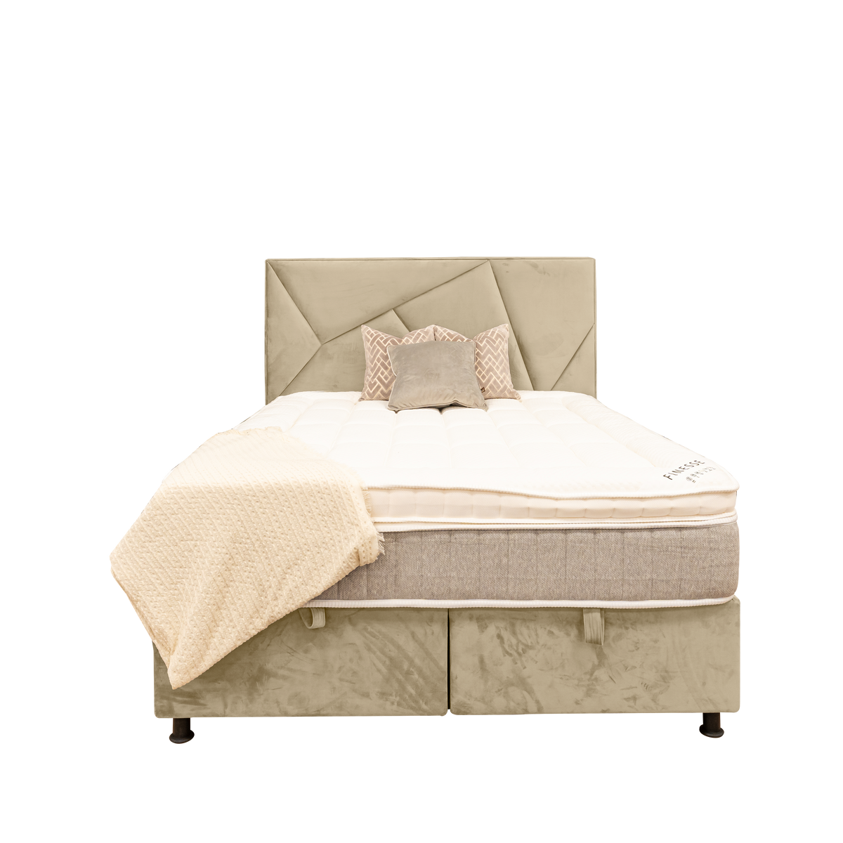 Upholstered in luxurious, soft fabric with a sophisticated geometric headboard design, it brings a touch of elegance to your space.