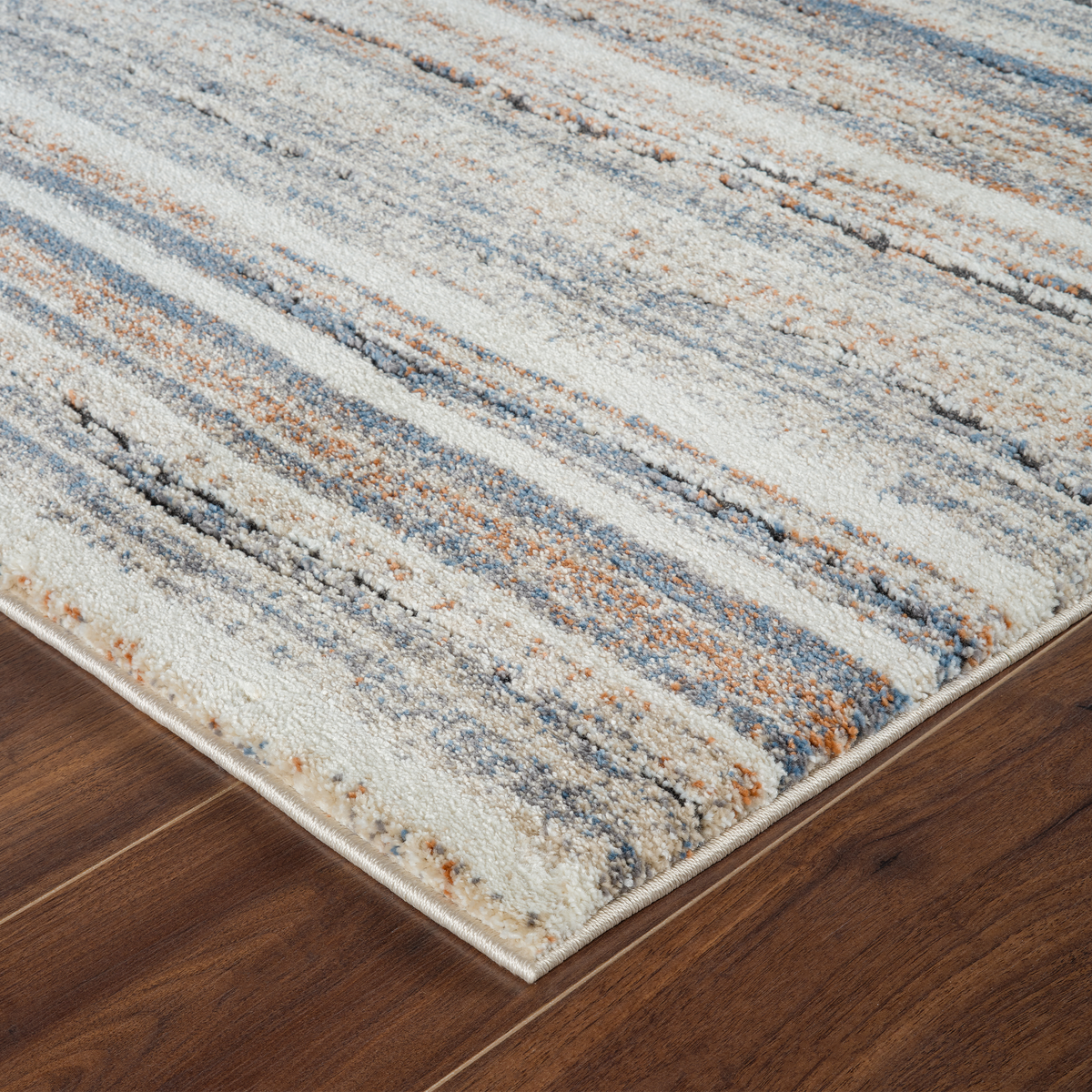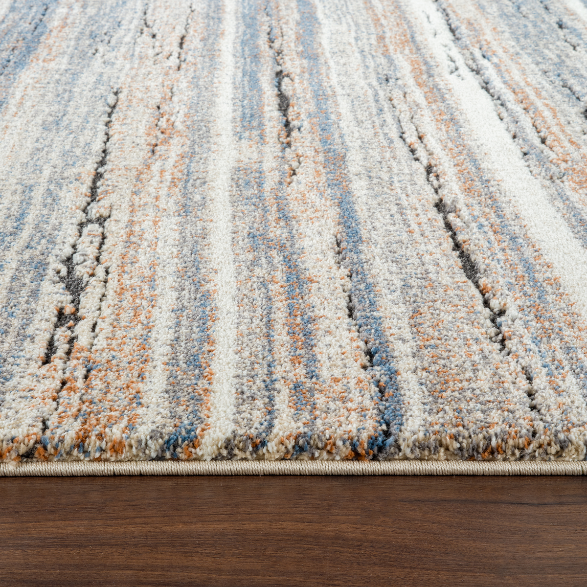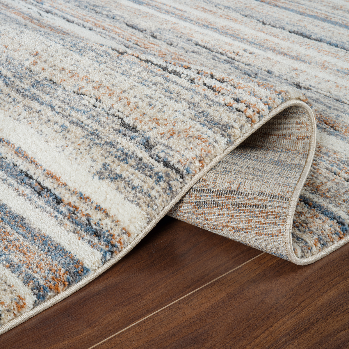The Marble Linear-Blue Cream Rug features a subtle, modern stripe design in earthy tones adding an elegant, contemporary touch to your home décor.