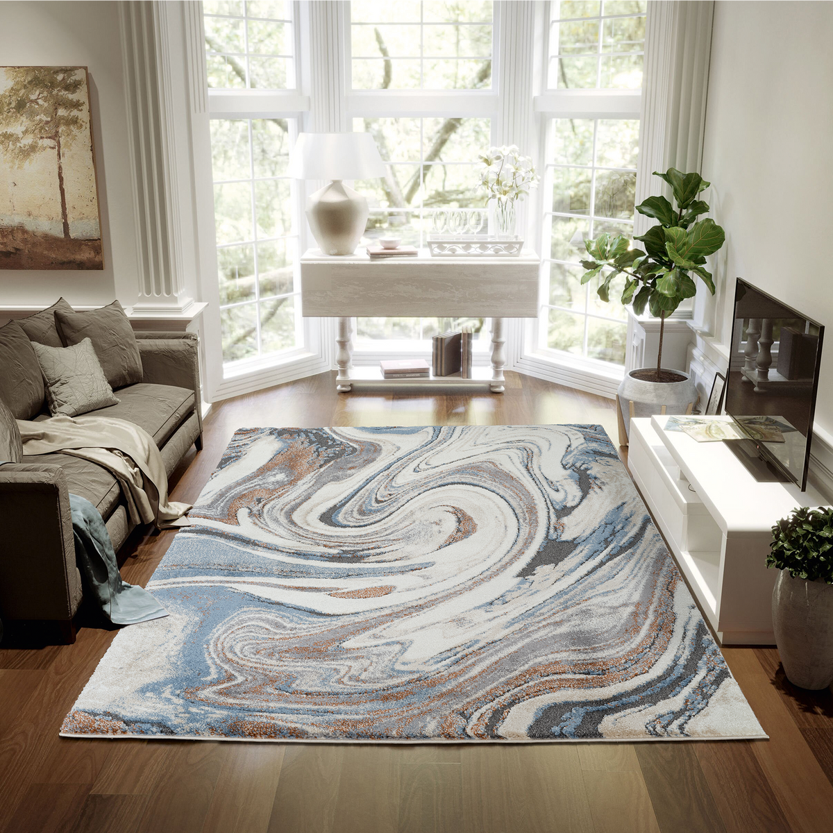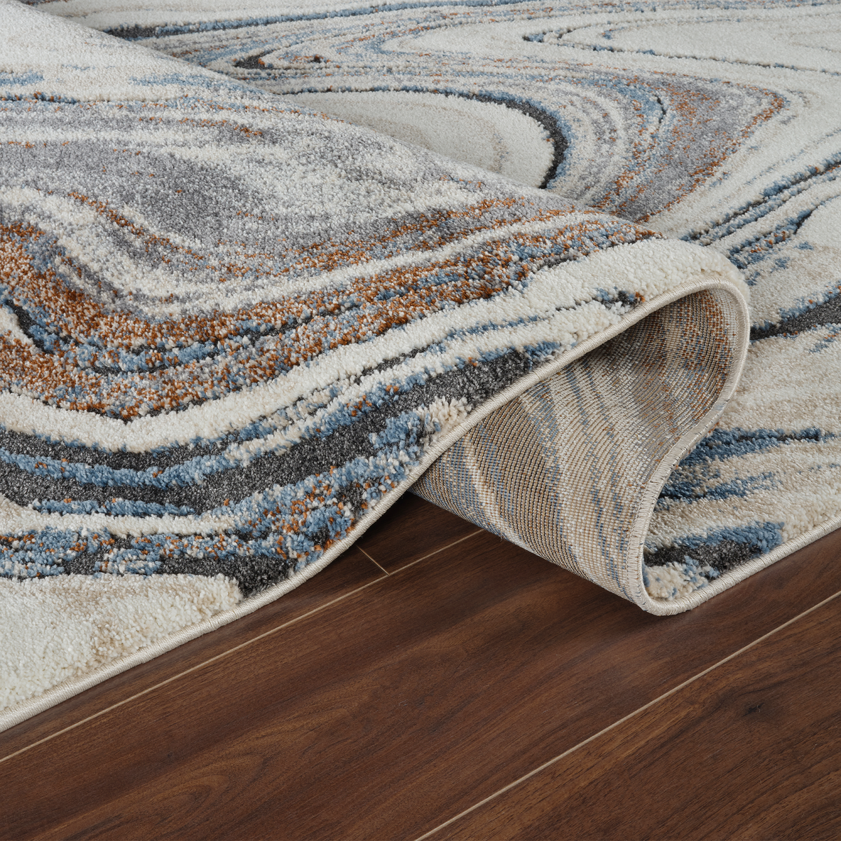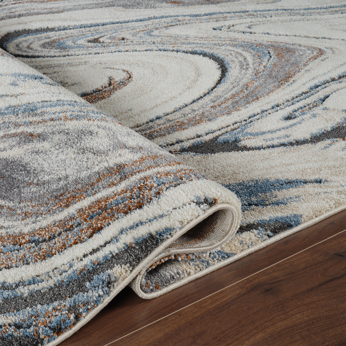 Bring contemporary elegance into your home with our Marble Seascape-Blue Cream Rug.
