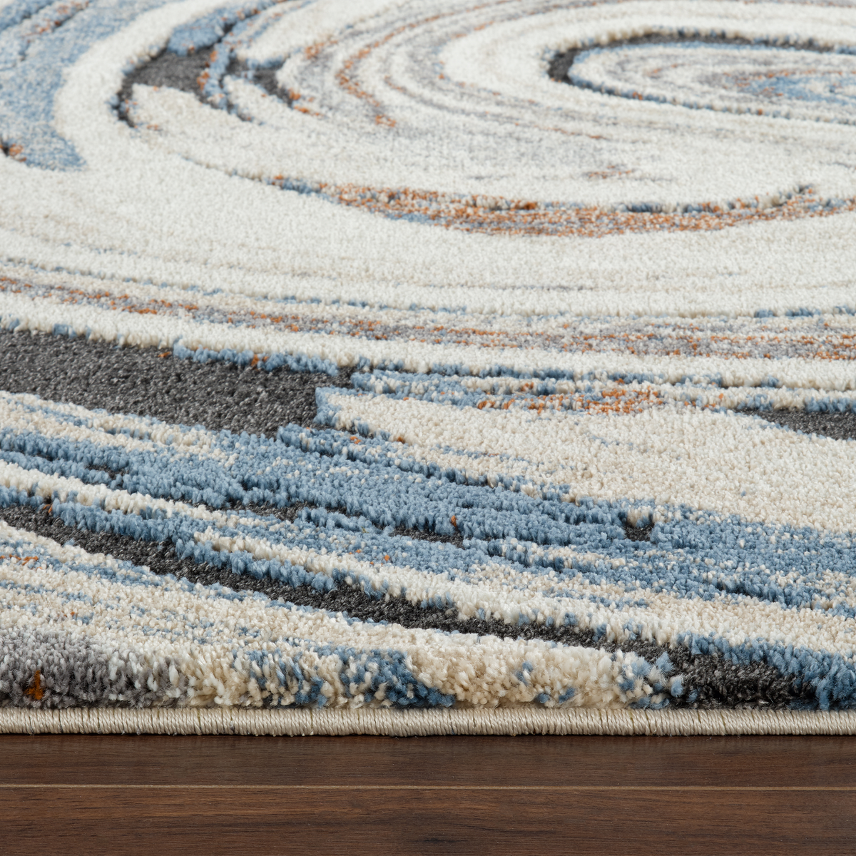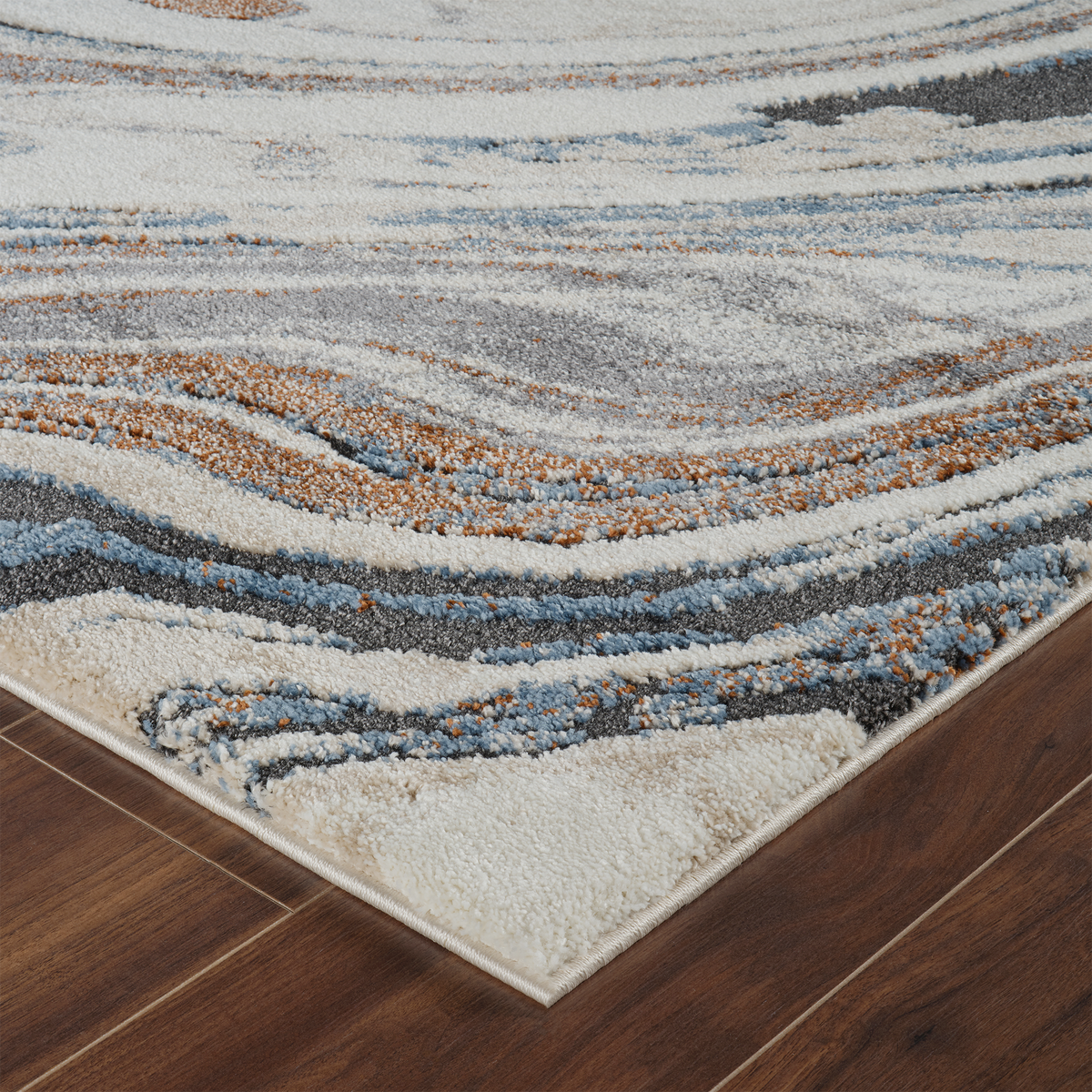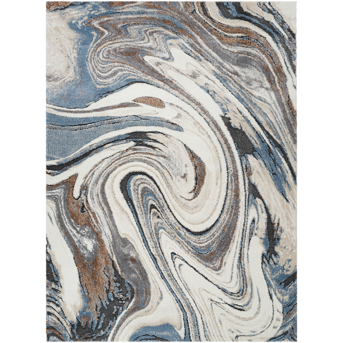 Bring contemporary elegance into your home with our Marble Seascape-Blue Cream Rug.