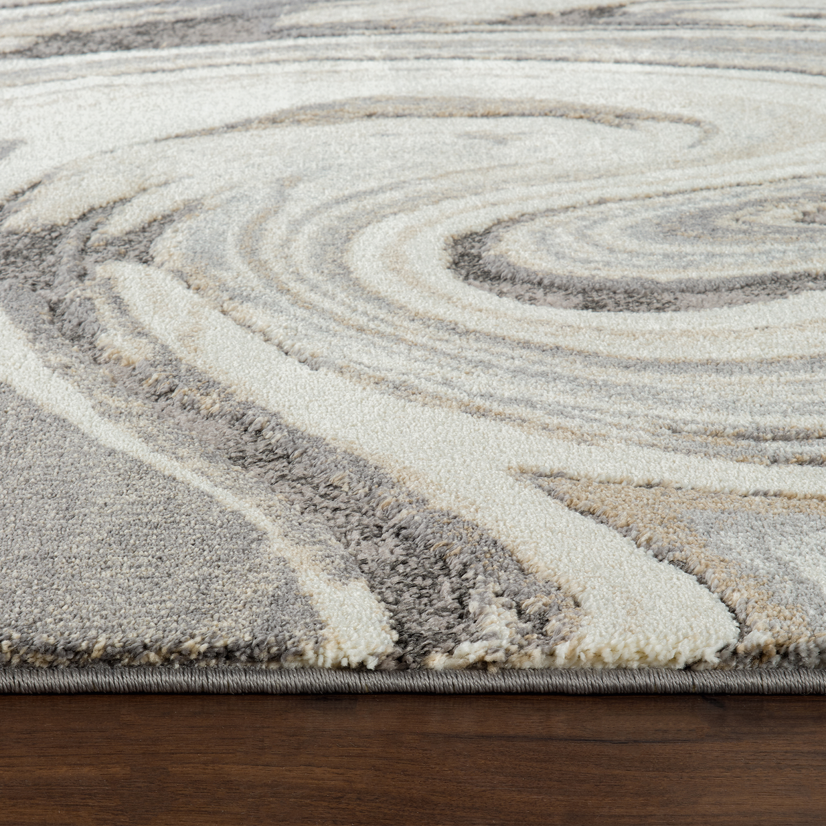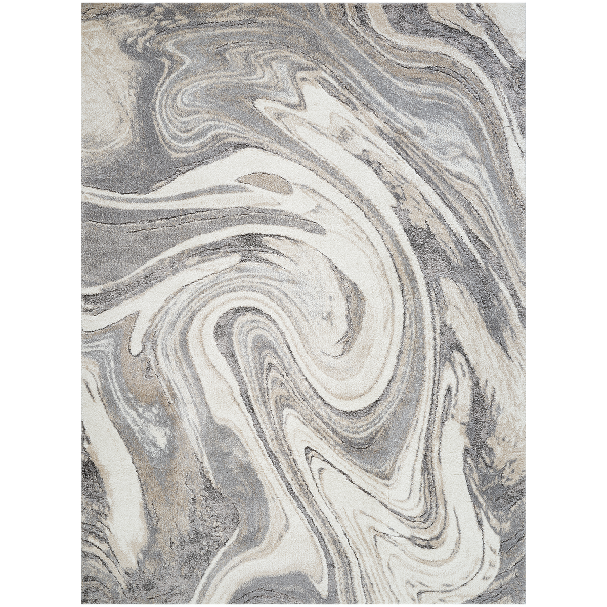 The Marble Seascape-Grey D.Grey Rug features an intricate blend of soft, neutral tones of grey, beige, and cream which flow seamlessly across the surface in a striking wave pattern.