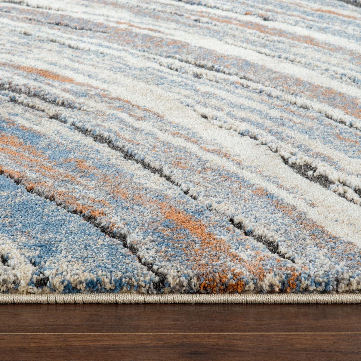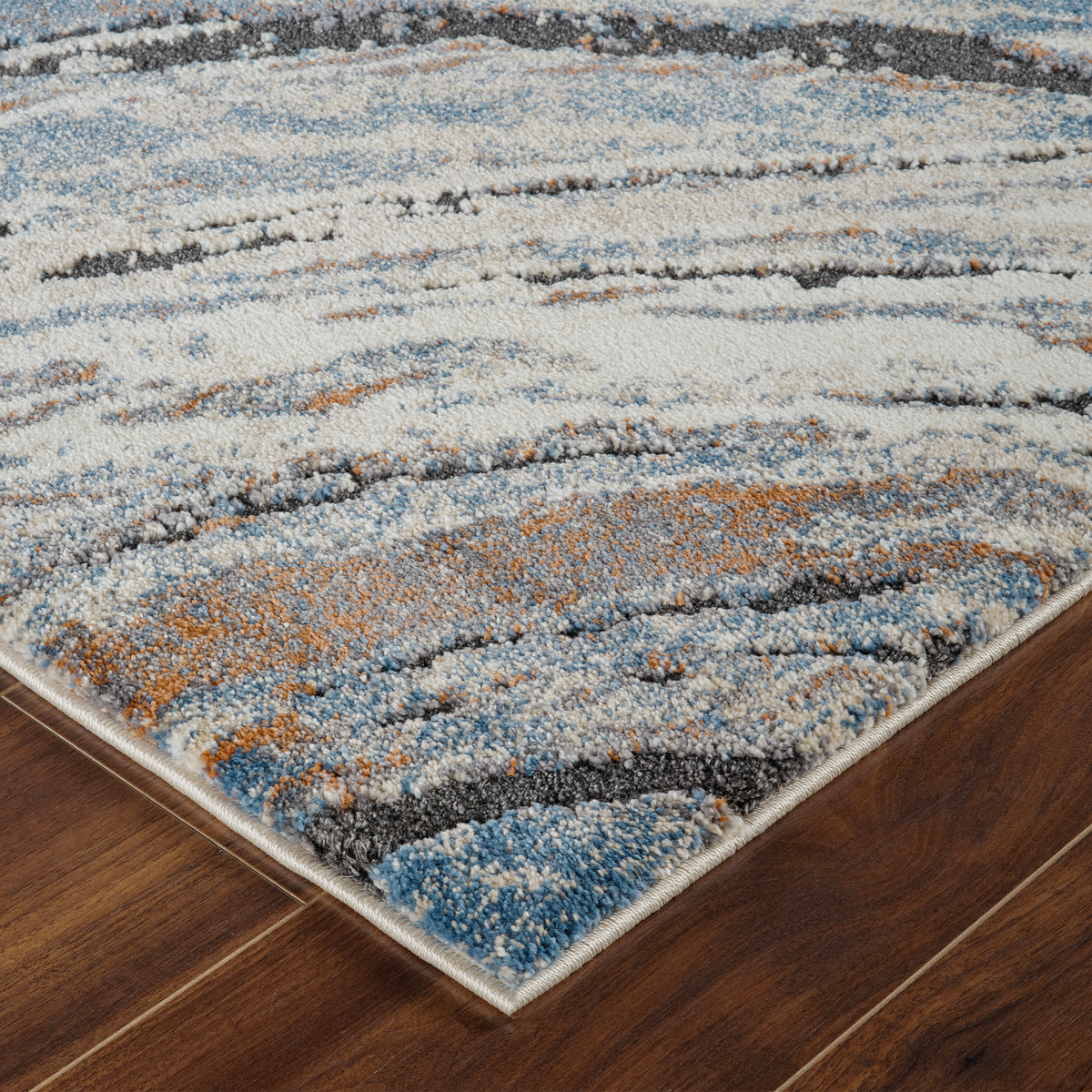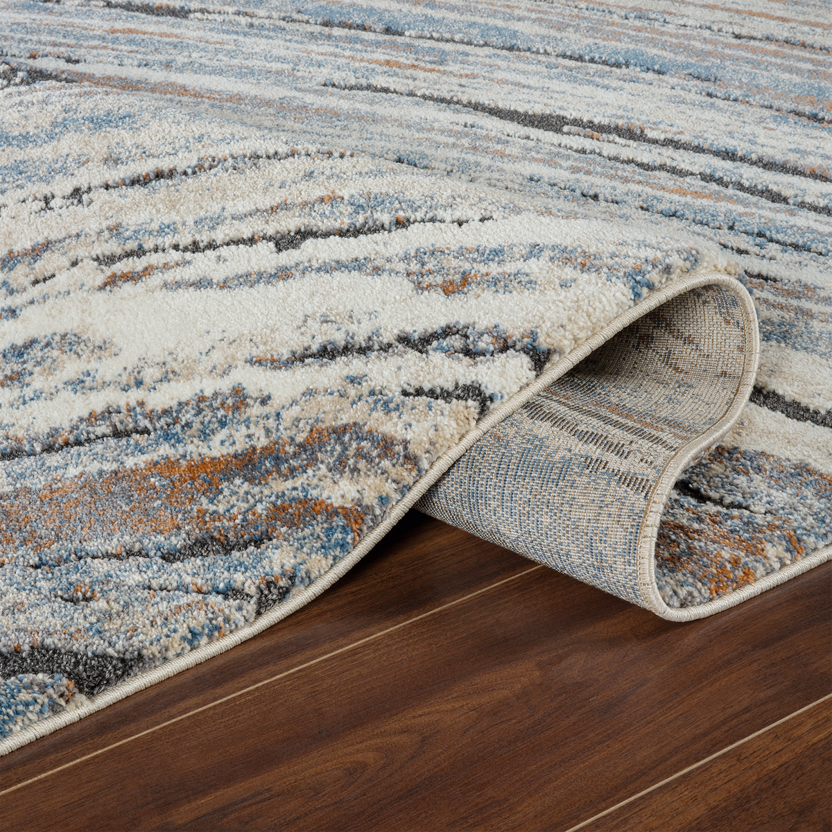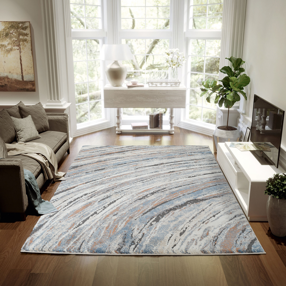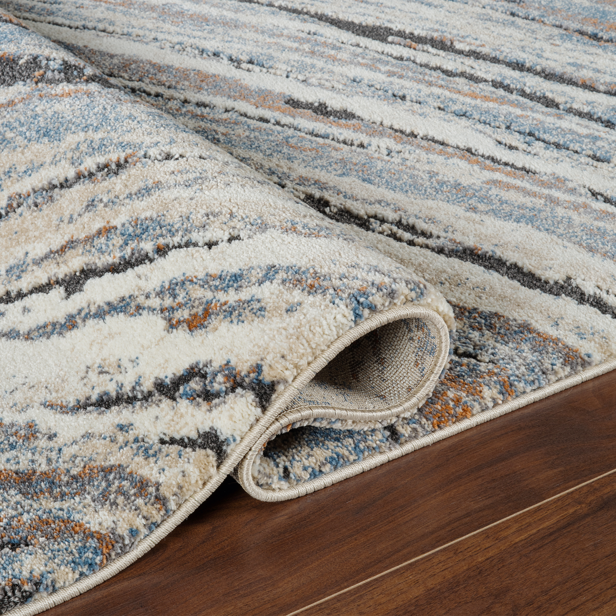 Bring contemporary elegance into your home with our Marble Wave- Blue Cream Rug.