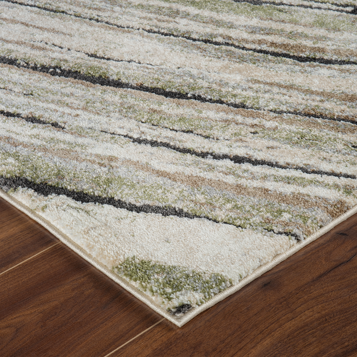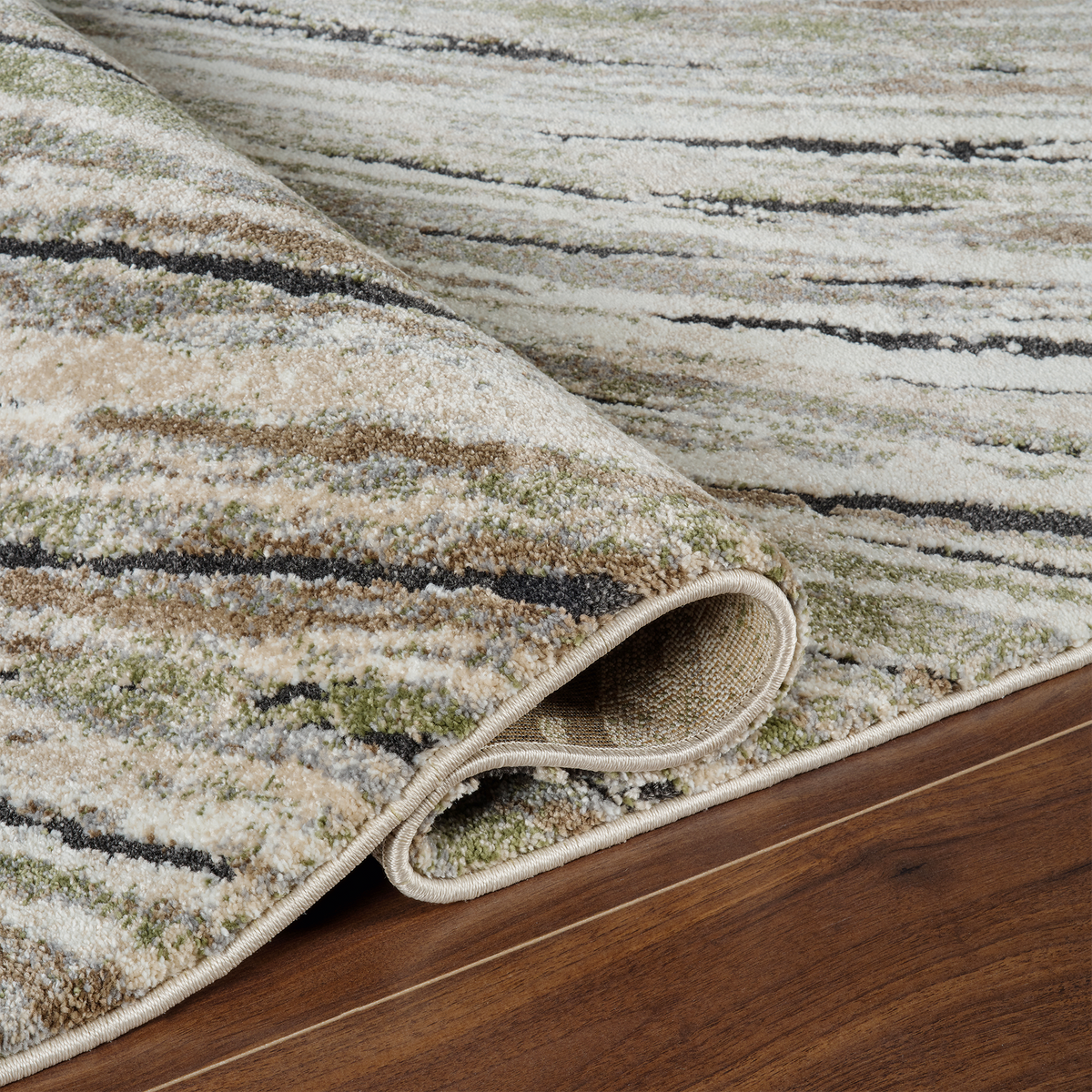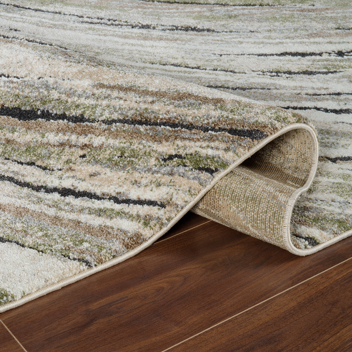 Bring contemporary elegance into your home with our Marble Wave- Green Cream Rug.