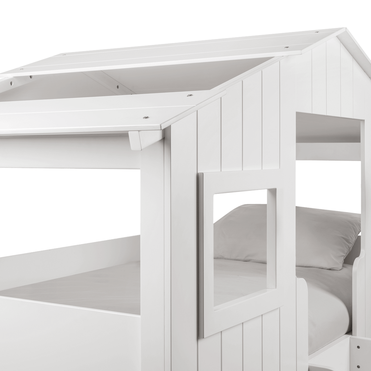 The Maxwell Treehouse Bunk Bed is a delightful and imaginative addition to any child's bedroom, designed to blend play and rest seamlessly.