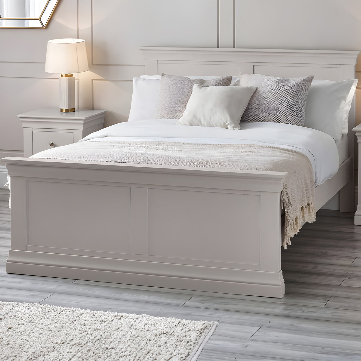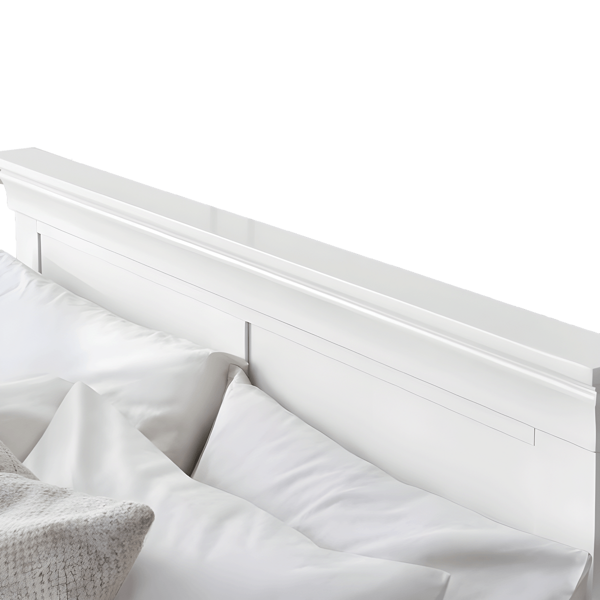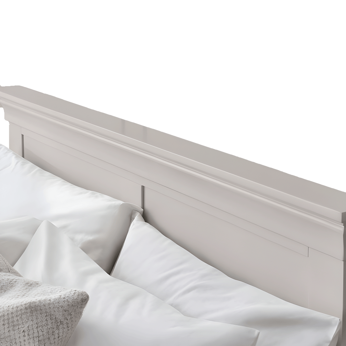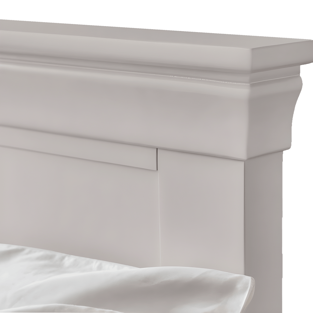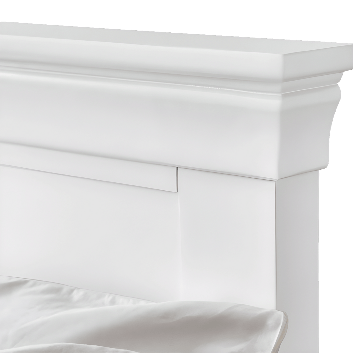 The Mayfair Bedframe features charming top-tapered cornices and a cut-out base, adding subtle yet stylish details that set it apart. Its versatile design seamlessly complements both classic and modern bedroom aesthetics, making it a beautiful and functional addition to any home.
