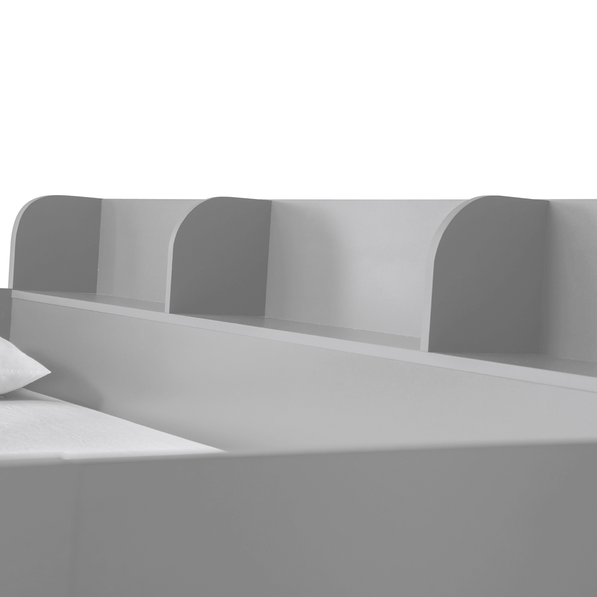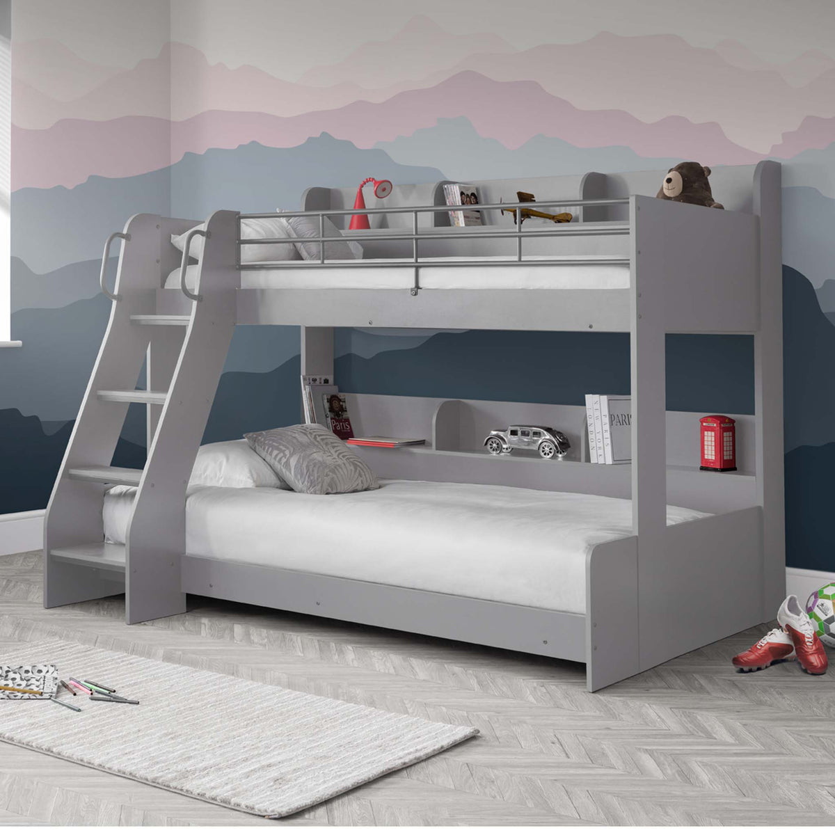 This bunk bed offers three sleeping spaces within the space of a single bed, making it perfect for shared bedrooms or sleepovers. Available in sleek white or light grey finishes, the Nash Triple Bunk Bed seamlessly integrates into various interior styles, offering a modern and versatile look.