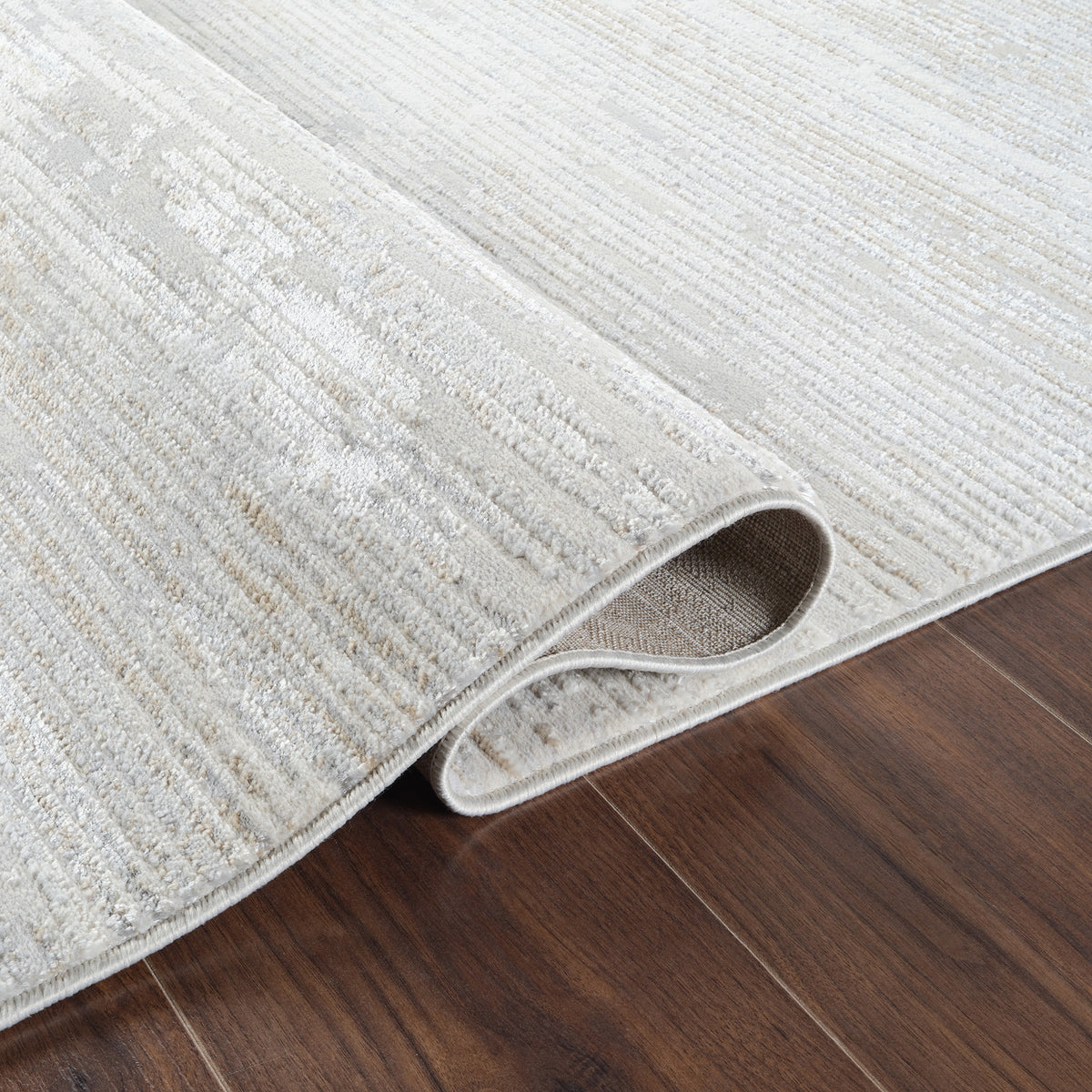 The Nova Lunar Beige Rug features a soft, understated palette of neutral tones. The design showcases fine horizontal lines that create a subtle, elegant texture, perfect for adding depth and style to any room.