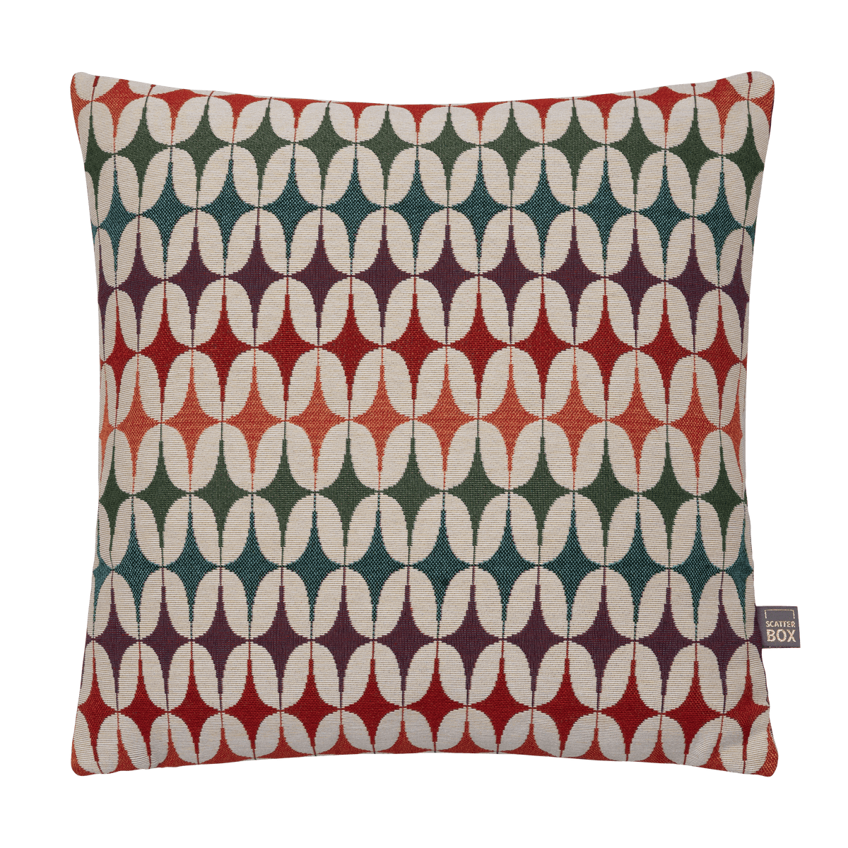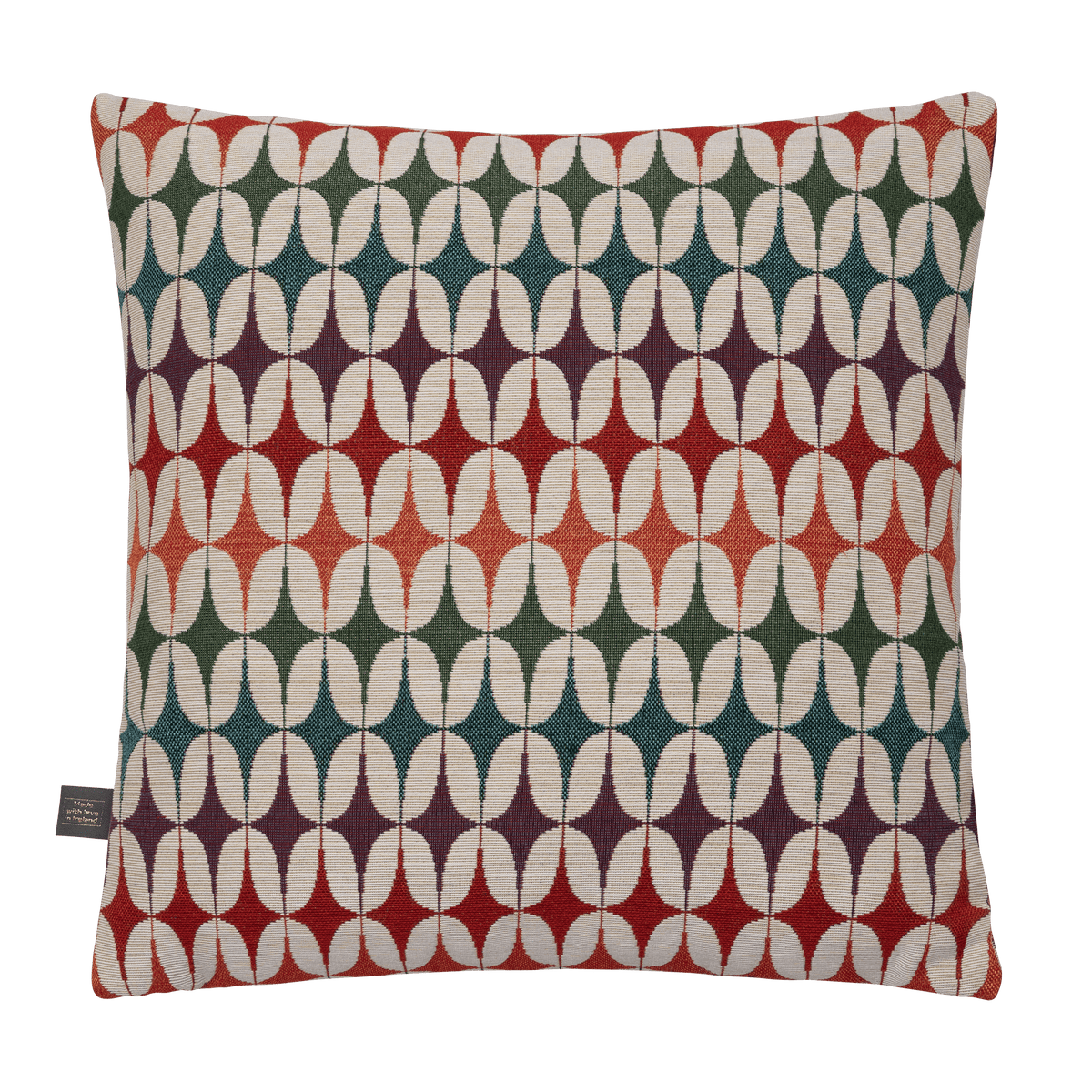 Geometric influence and contrasting vibrant tones will take a spotlight in your home with the Olwyn, Multi cushion. Made with Love in Ireland, from a lavish woven jacquard, this beautiful abstract cushion will add a luxurious pop of colour to your living space.