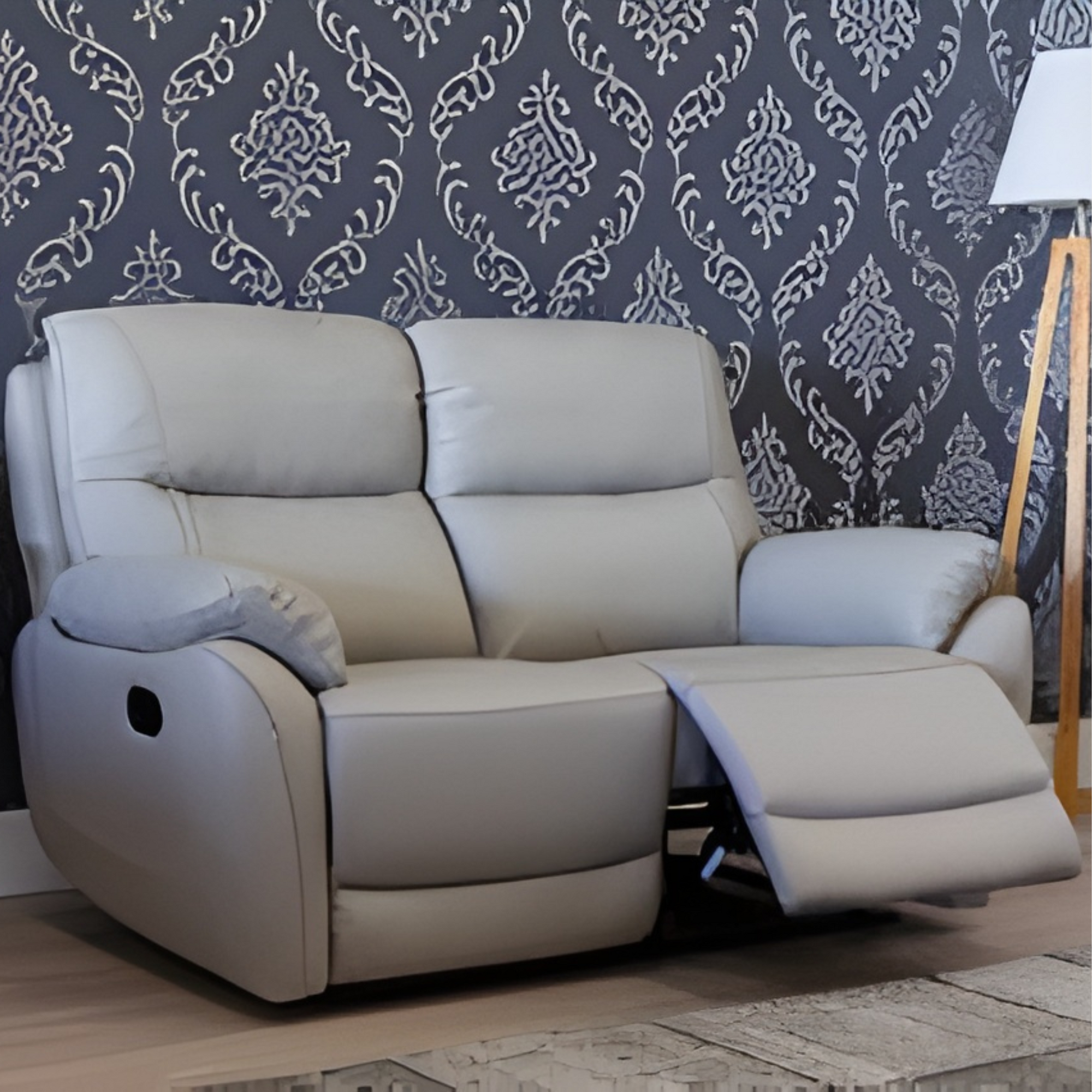 The Ophelia 2 Seater Manual Recliner offers a sophisticated seating solution with part leather upholstery available in Dark Grey and Pearl Grey. Designed to comfortably accommodate two people, this recliner features a manual reclining function for personalized relaxation. Its blend of leather and fabric materials ensures durability and a premium feel, making it an ideal choice for both style and comfort in contemporary living spaces.