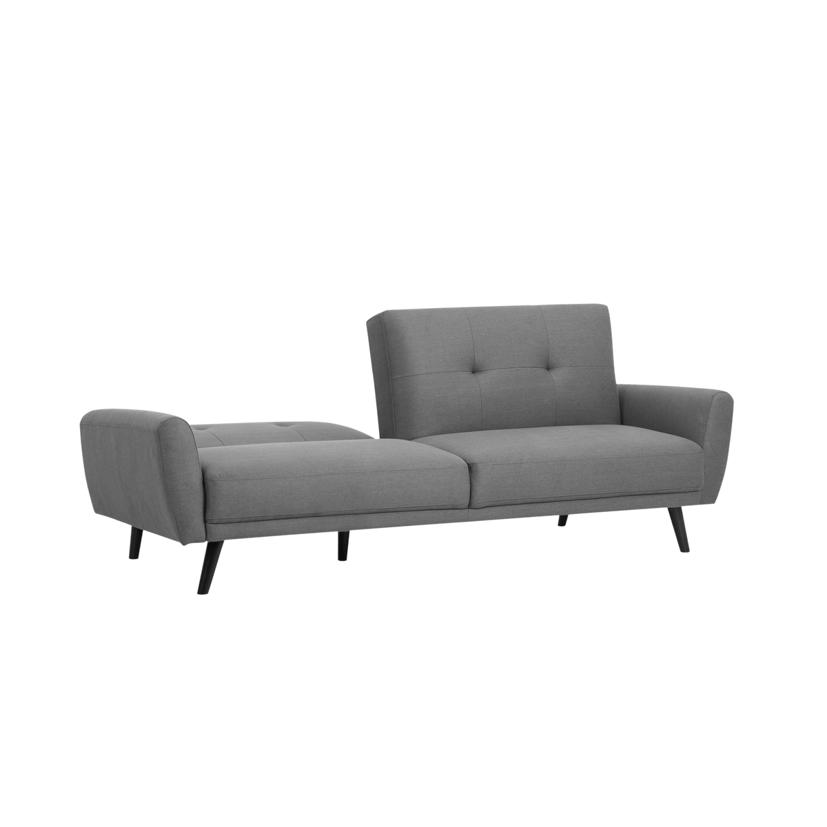 The split-back design enables independent reclining on each side. This unique feature allows one side to recline while the other remains upright, offering flexibility to suit different preferences. With clean lines, tufted back cushions, and a minimalist silhouette, this sofa bed embodies retro Scandinavian design. Its stylish yet understated look allows it to blend seamlessly into various decor styles, from mid-century modern to contemporary.