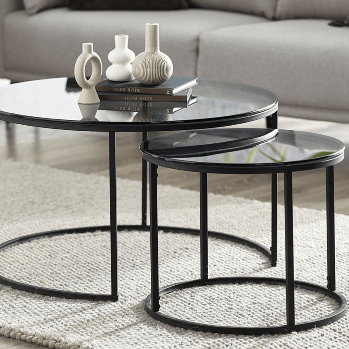 Model | Perth Round Nesting Coffee Tables Smoked Gl |