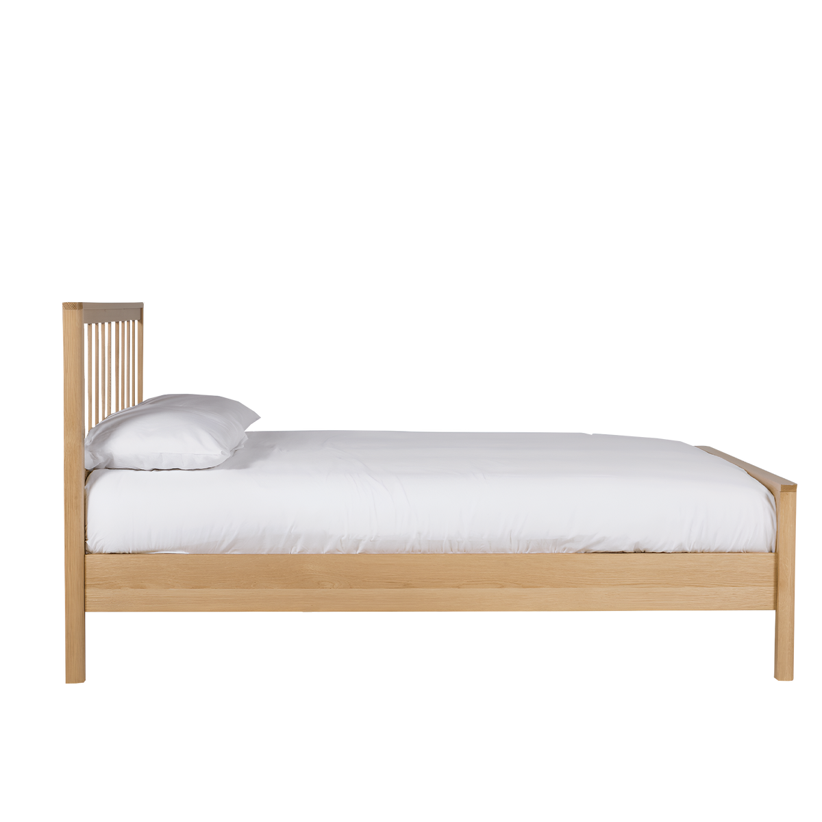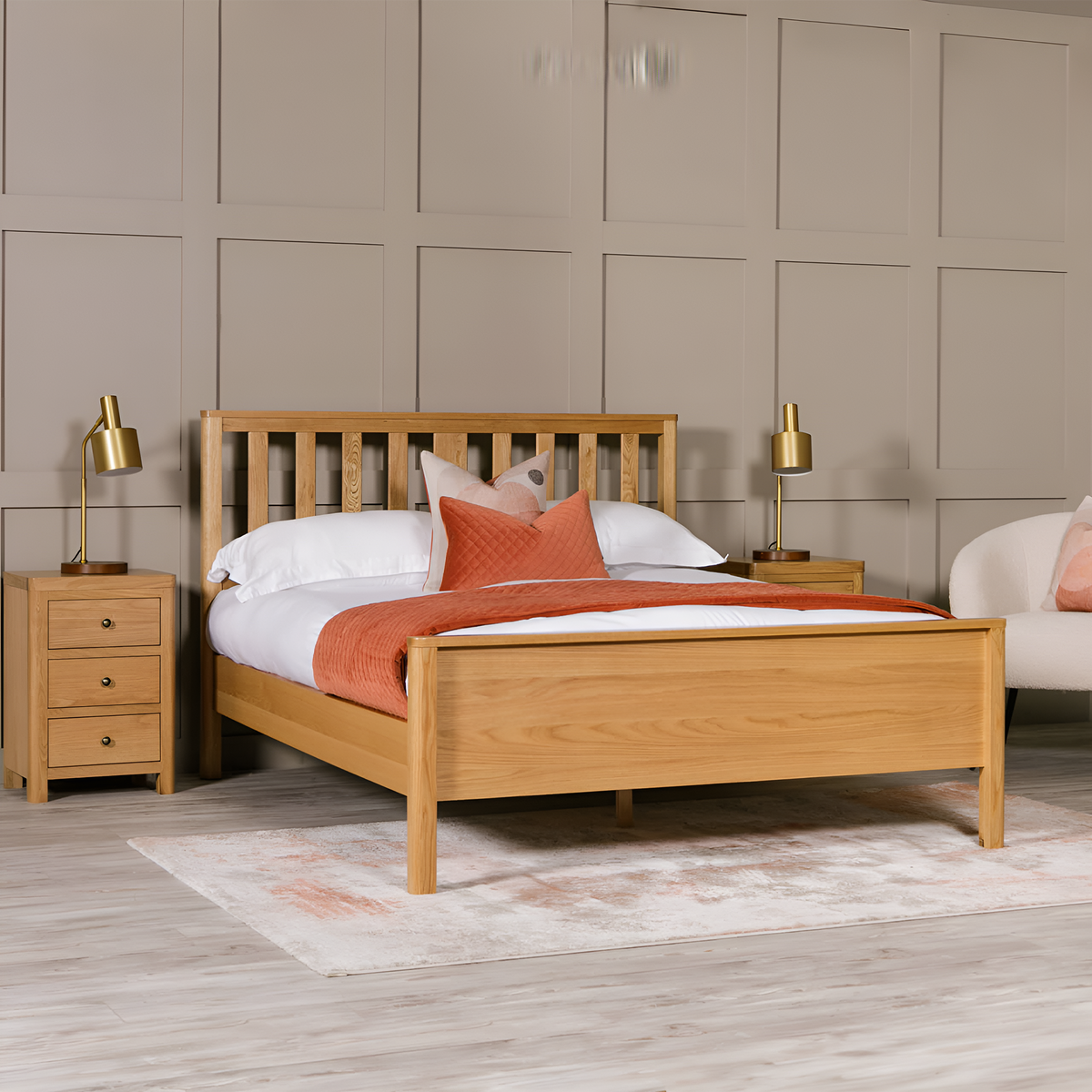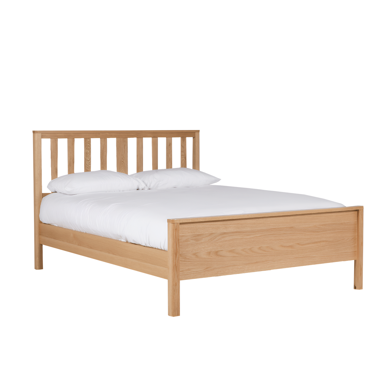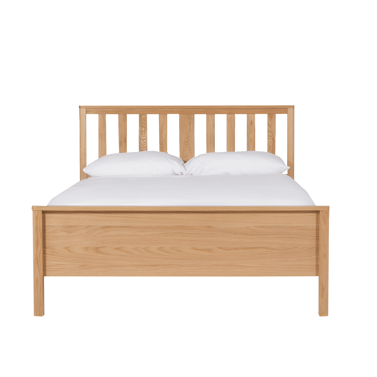 The headboard showcases a slatted design, providing a classic look with a modern touch, while the low-end footboard offers a minimalist appeal. Built to last, this bed frame is sturdy and stable, ensuring long-term use and reliable support for your mattress.