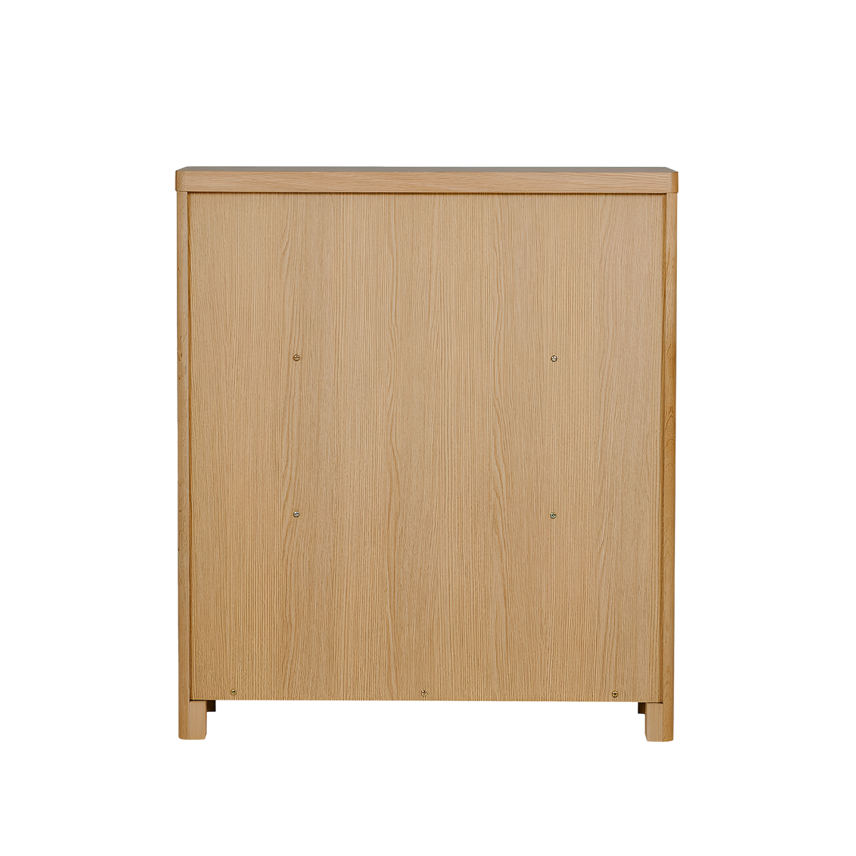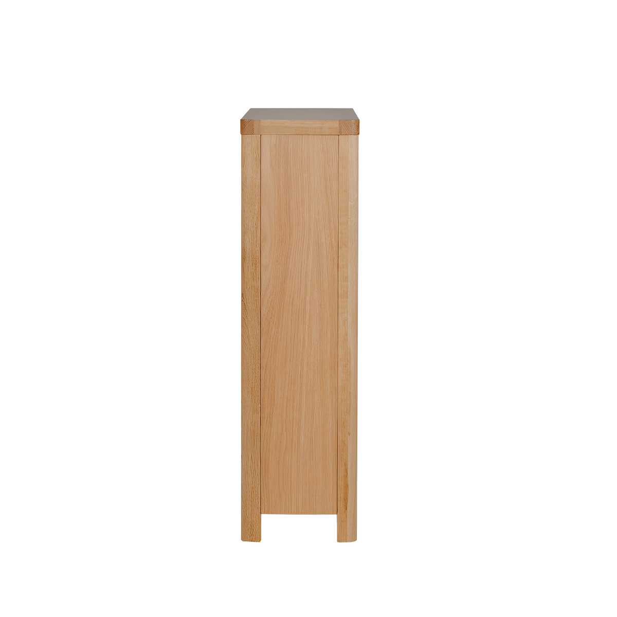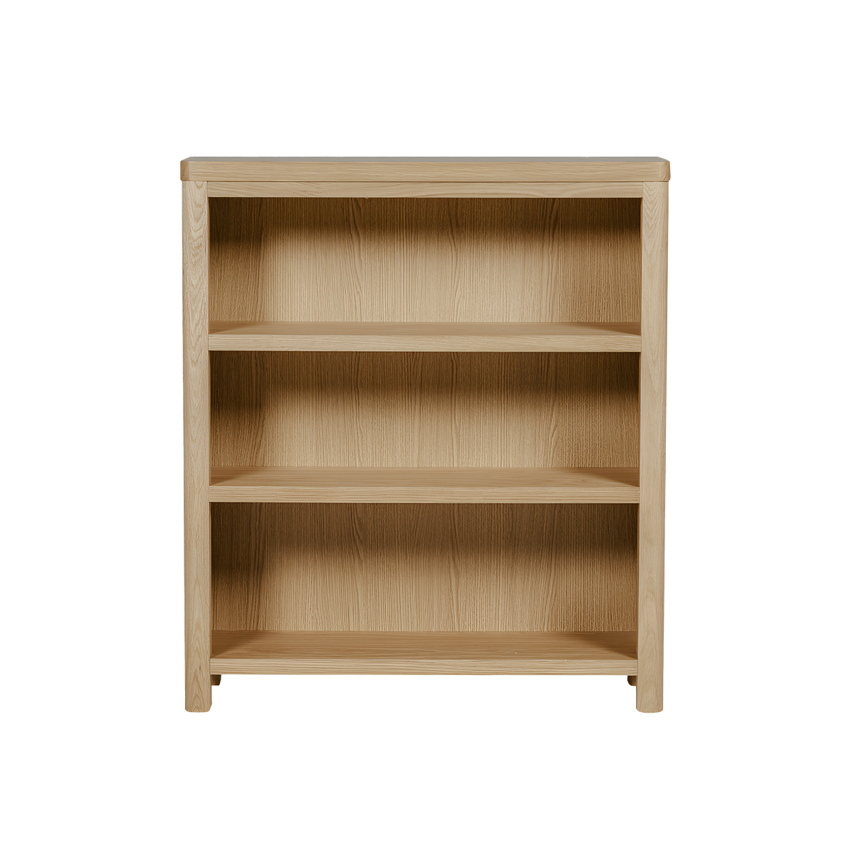 A blend of durability and elegance. Crafted from solid oak and oak veneer, this bookcase features smooth round edges and flush sides for a sleek, clean design. Perfect for any living space, they offer versatility and convenience.