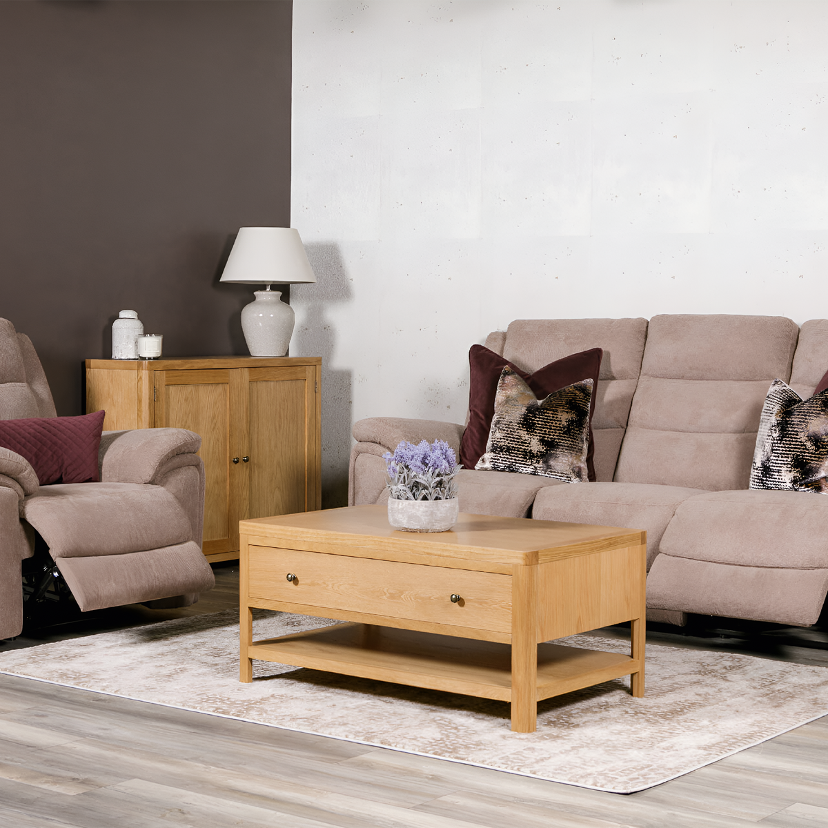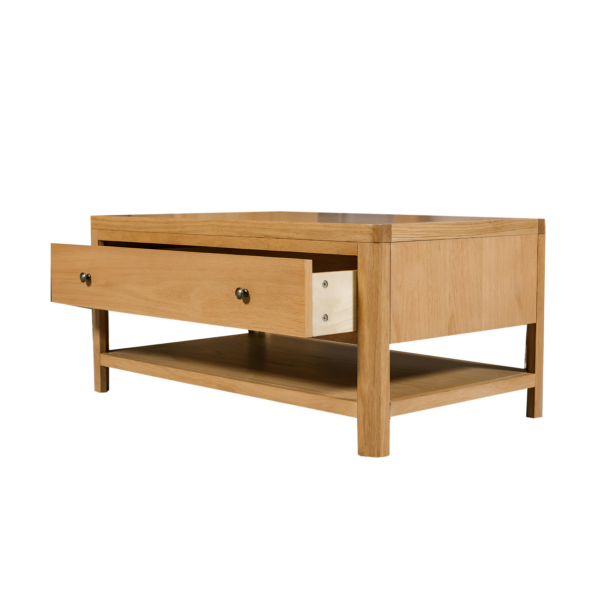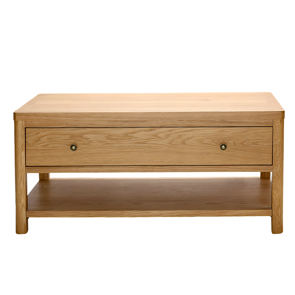 Crafted with solid oak and veneer, its clean design features smooth round edges and flush sides. Brushed metal handles adorn the matchbox drawer, offering seamless access from both sides. Enjoy smooth drawer runners for effortless functionality.