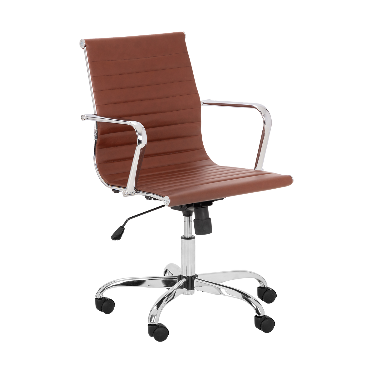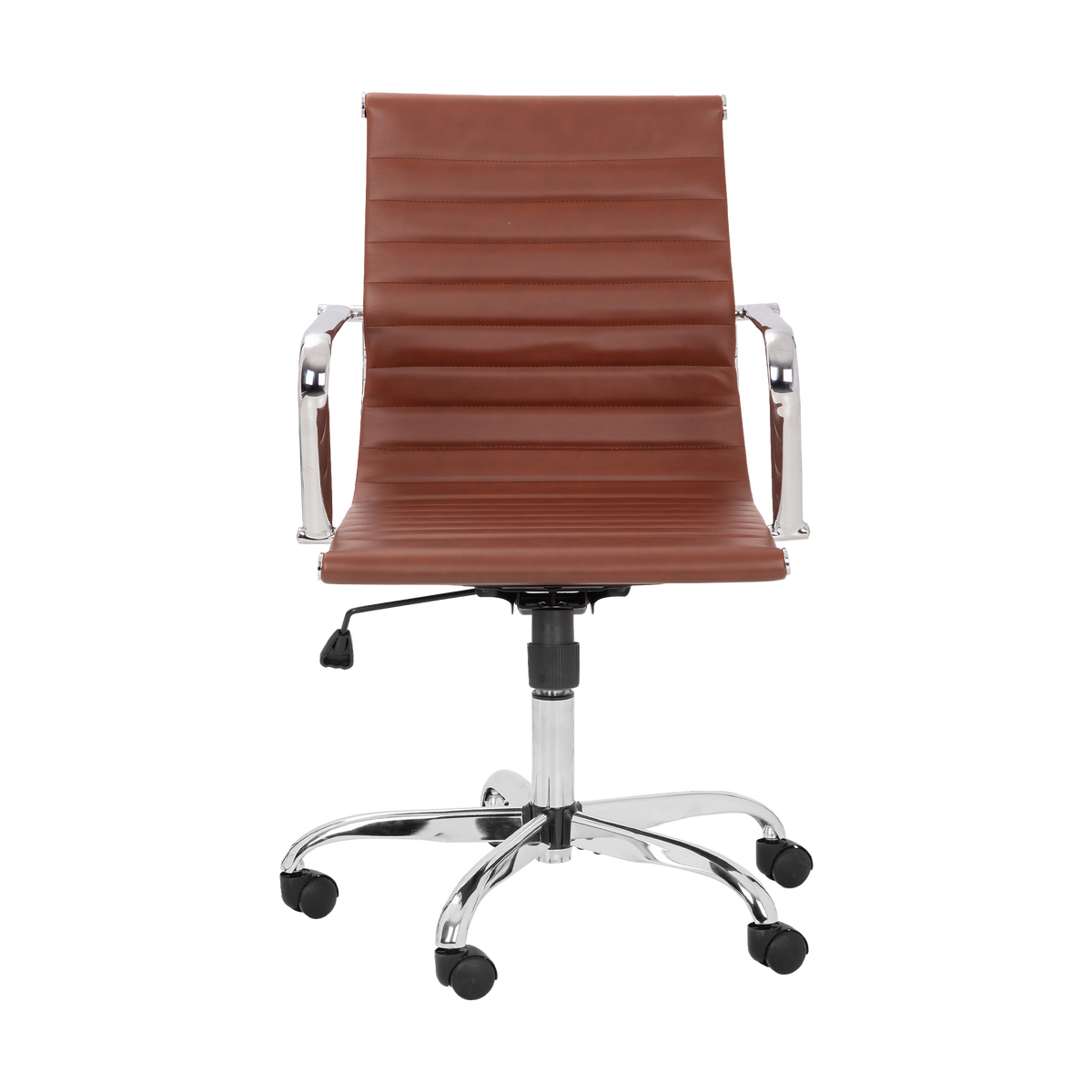 Elevate your home with the Reno Office Chair. Crafted from faux leather with a chrome plated frame, the Reno office chair is available in Black, Ivory, or Brown to match your office decor. The Reno Office Chair features a starbase with five castors, allowing the chair to move smoothly around the room. The adjustable seat height and high backrest allows you to reach maximum comfort throughout your working day. Available in brown finish, its the perfect addition to any modern desk chair.
