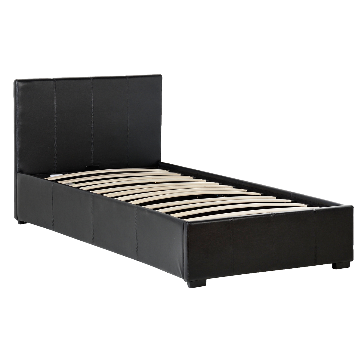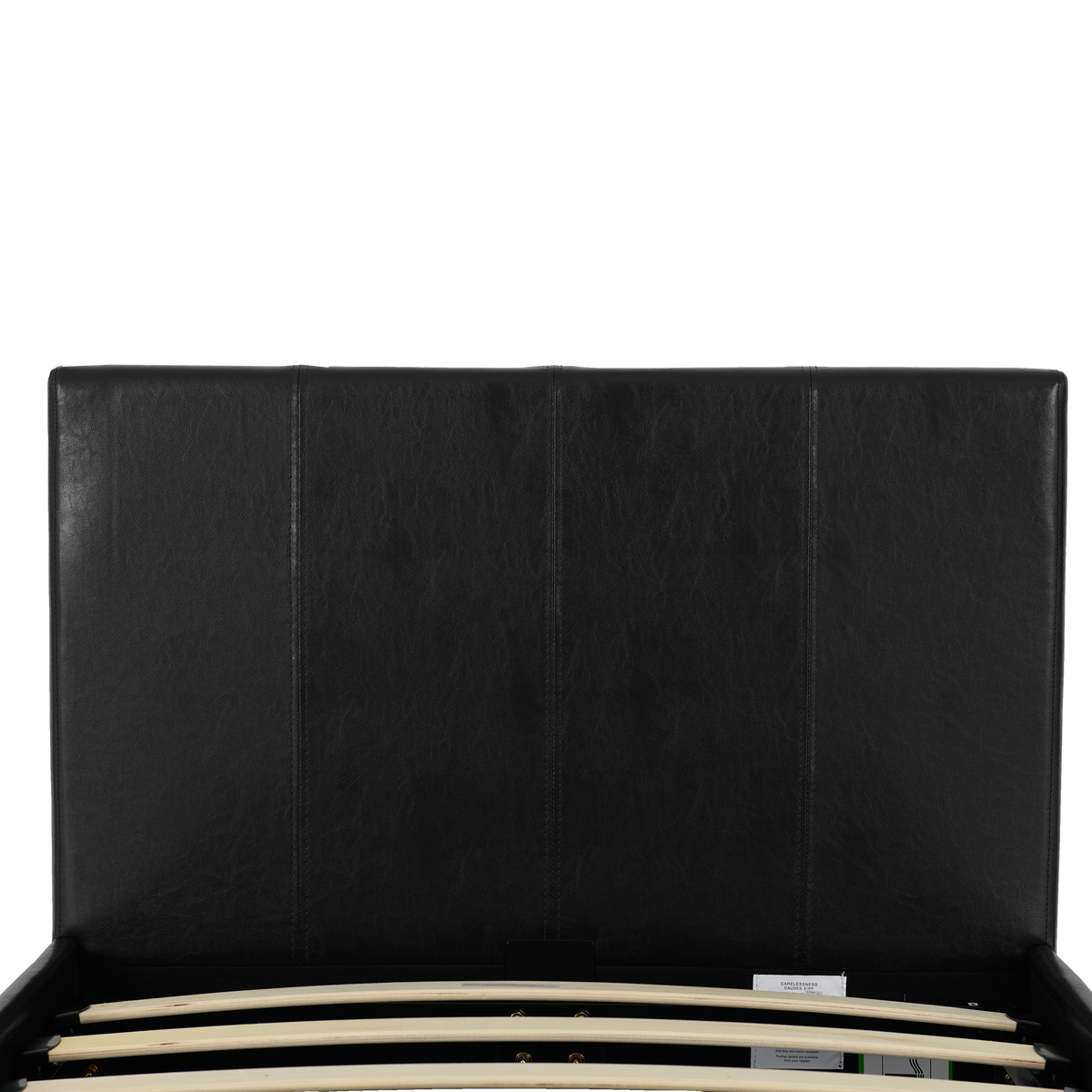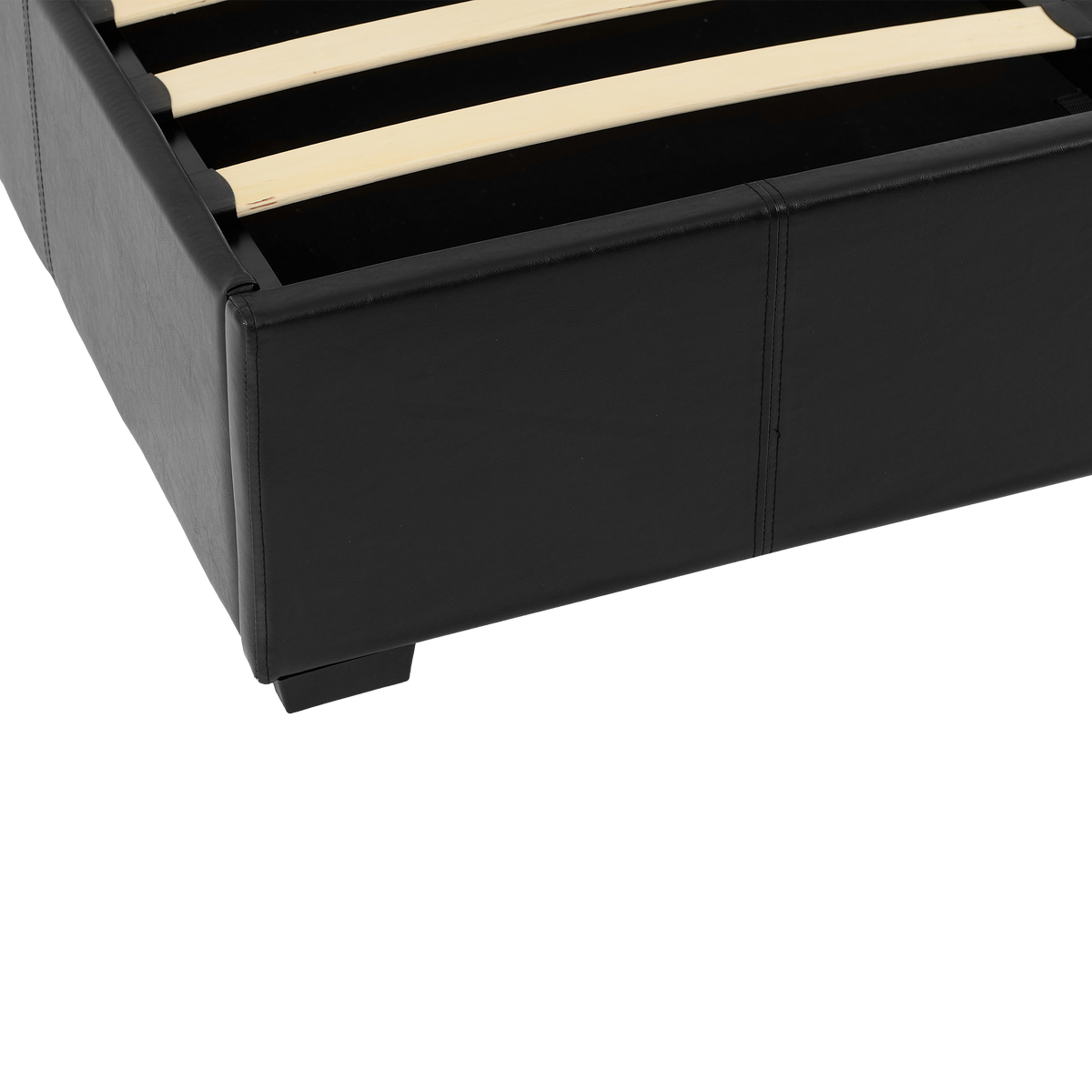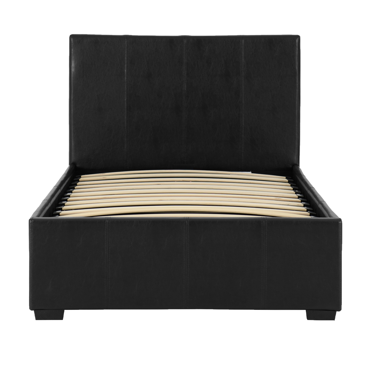 The Russell Ottoman Storage Bedframe is available in two luxurious finishes: Black Faux Leather for a sleek, modern look. The bed features laminated sprung slats paired with plastic slat caps, providing durable mattress support and enhancing comfort.