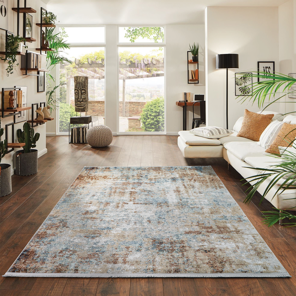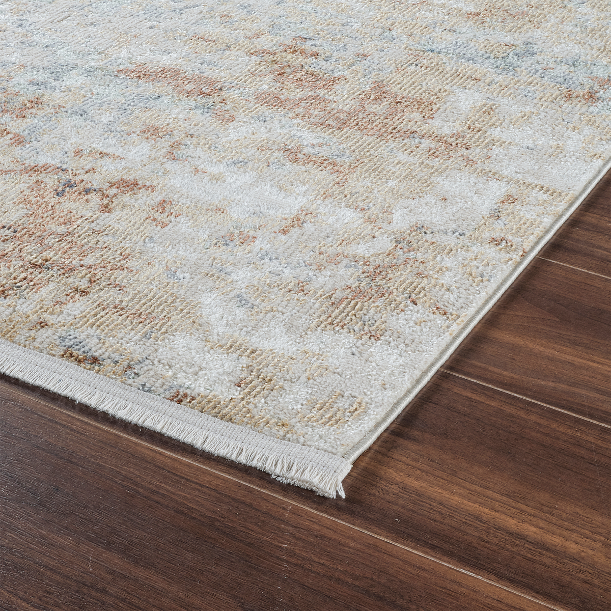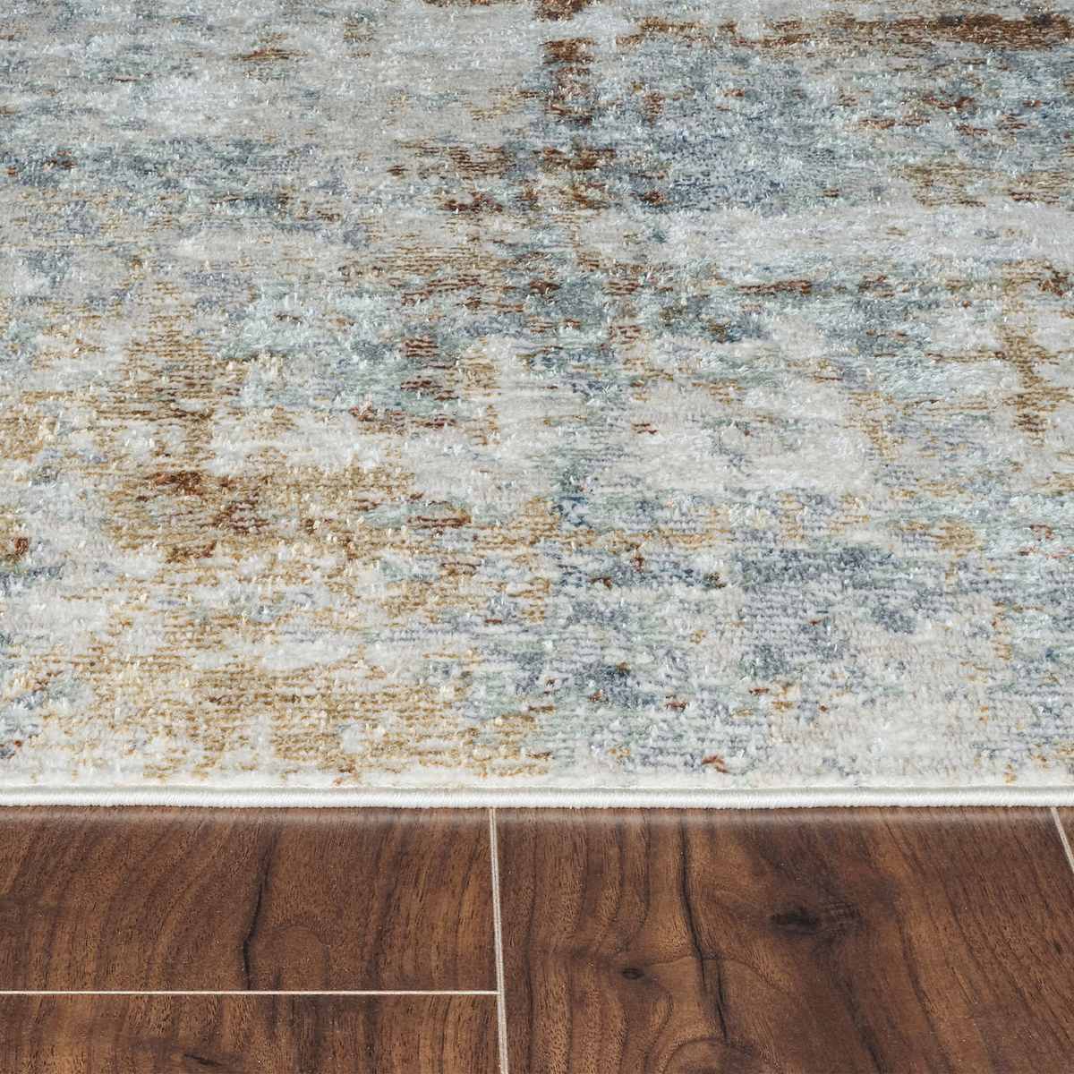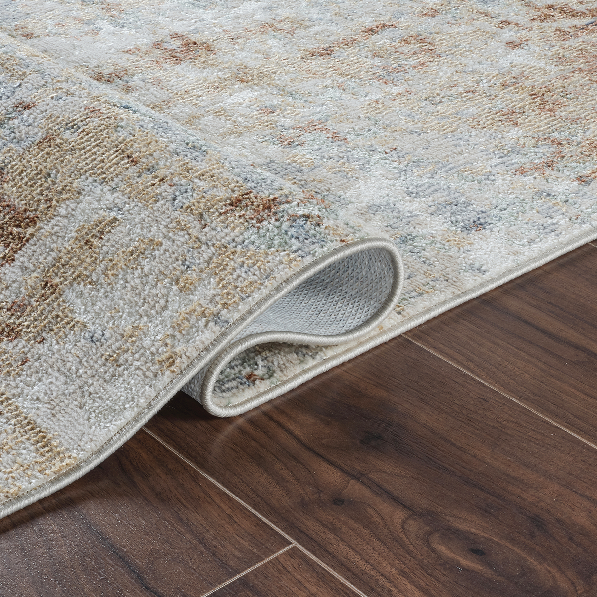 Our Santana Kamala Green Rug features a stylish blend of neutral tones, incorporating beige, brown, and grey hues in an abstract, distressed pattern that adds a modern yet cosy touch to any space.