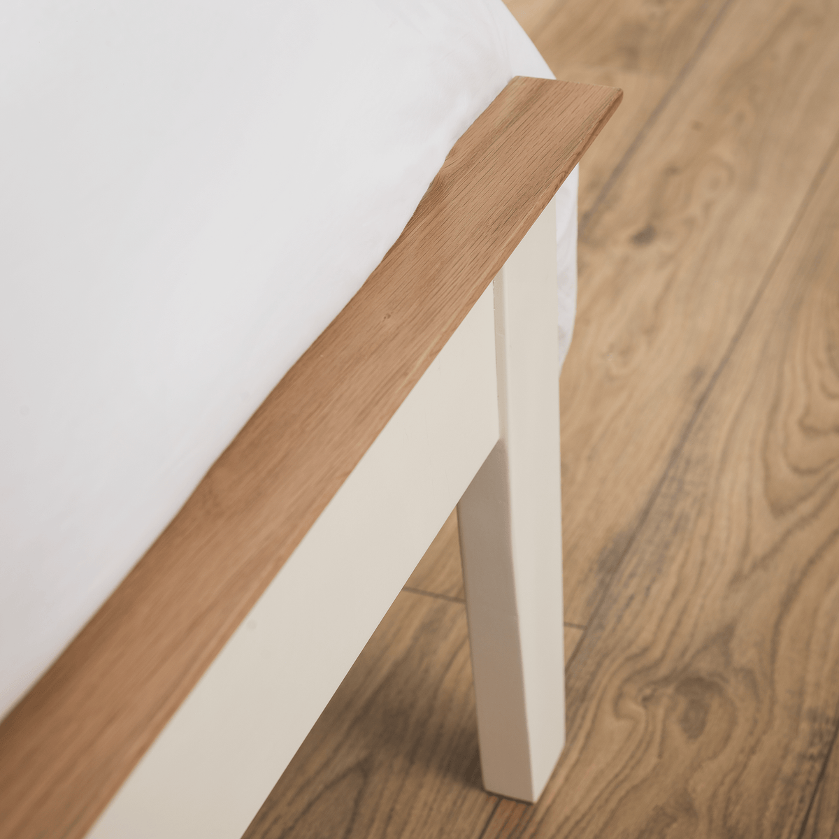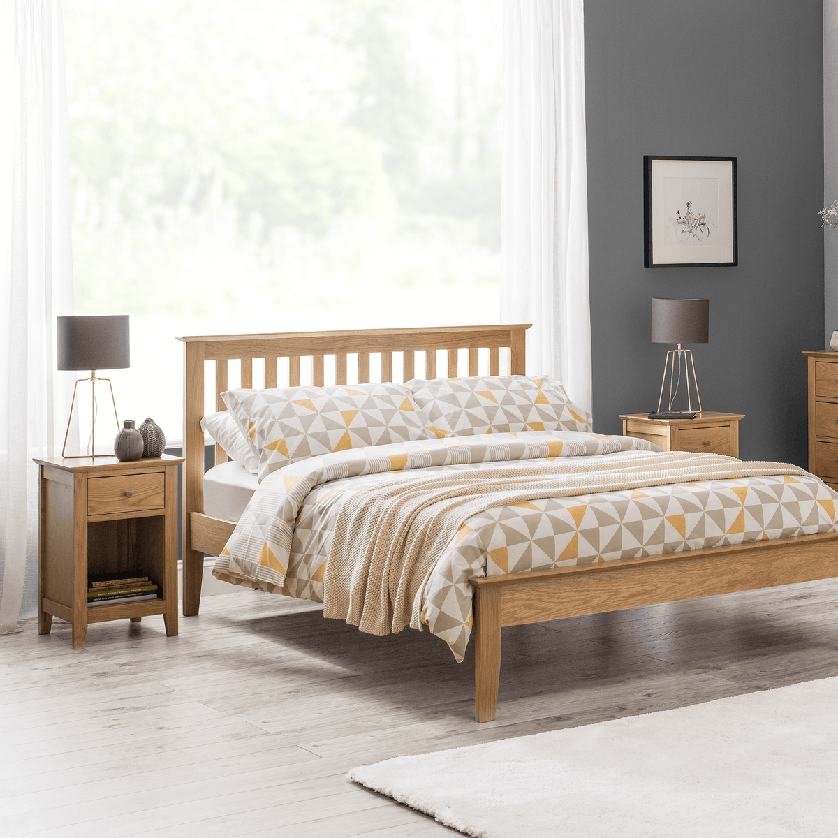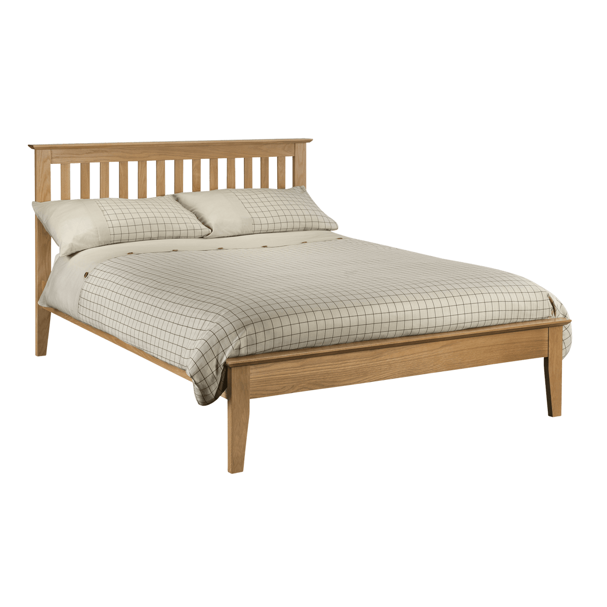 Constructed from solid white oak, it showcases a classic and natural wood finish that adds warmth and elegance to your space. The bed features a sturdy, sprung slatted base, providing enhanced comfort and support for a restful sleep.