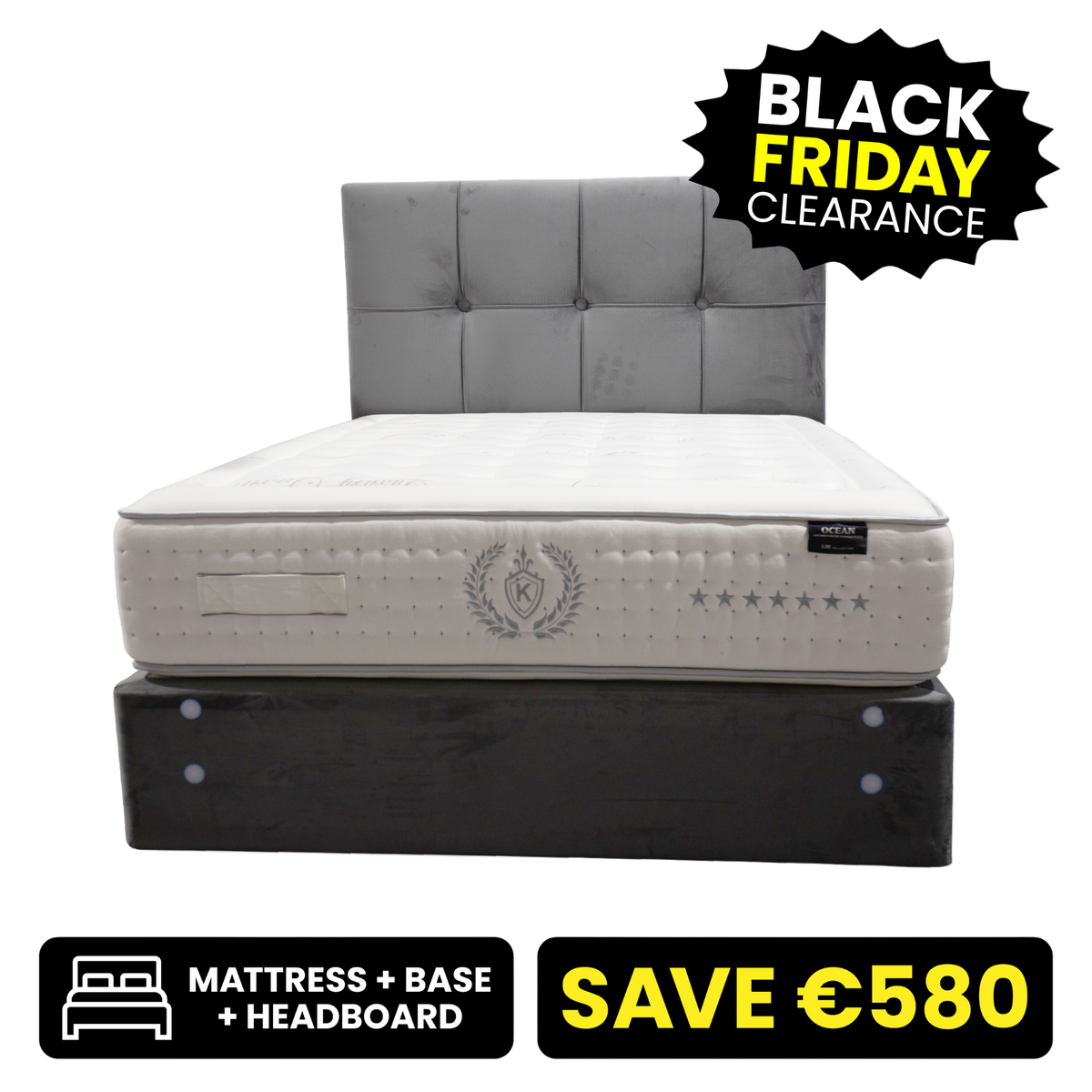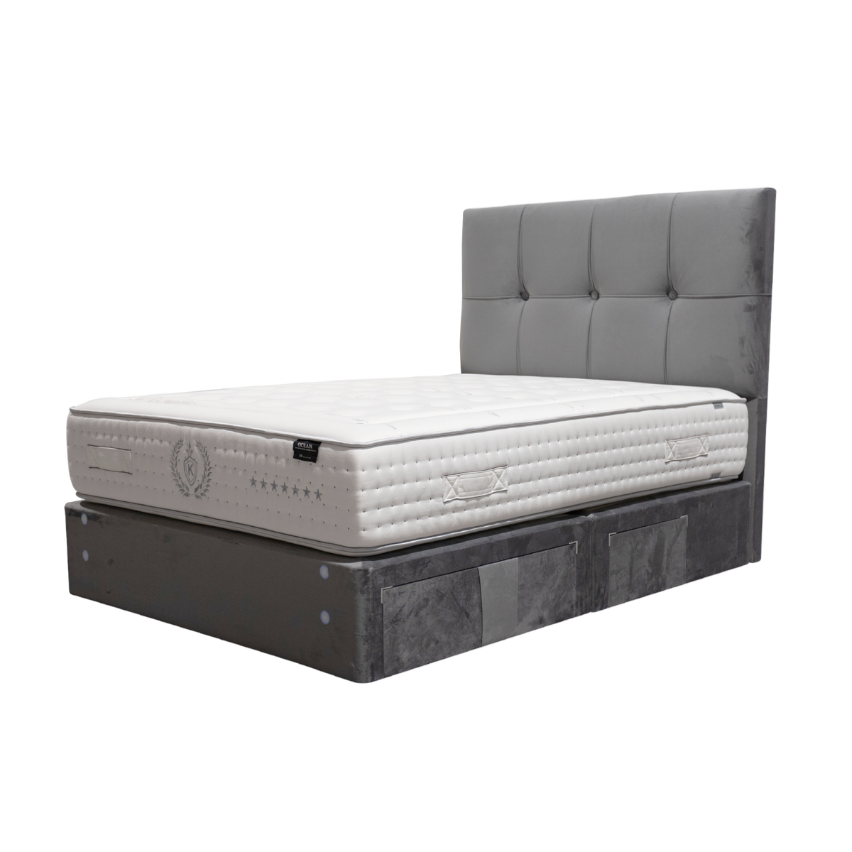 Set includes: Silver Colour Base, 55" Full Height Headboard, 5ft Pocket Sprung Mattress