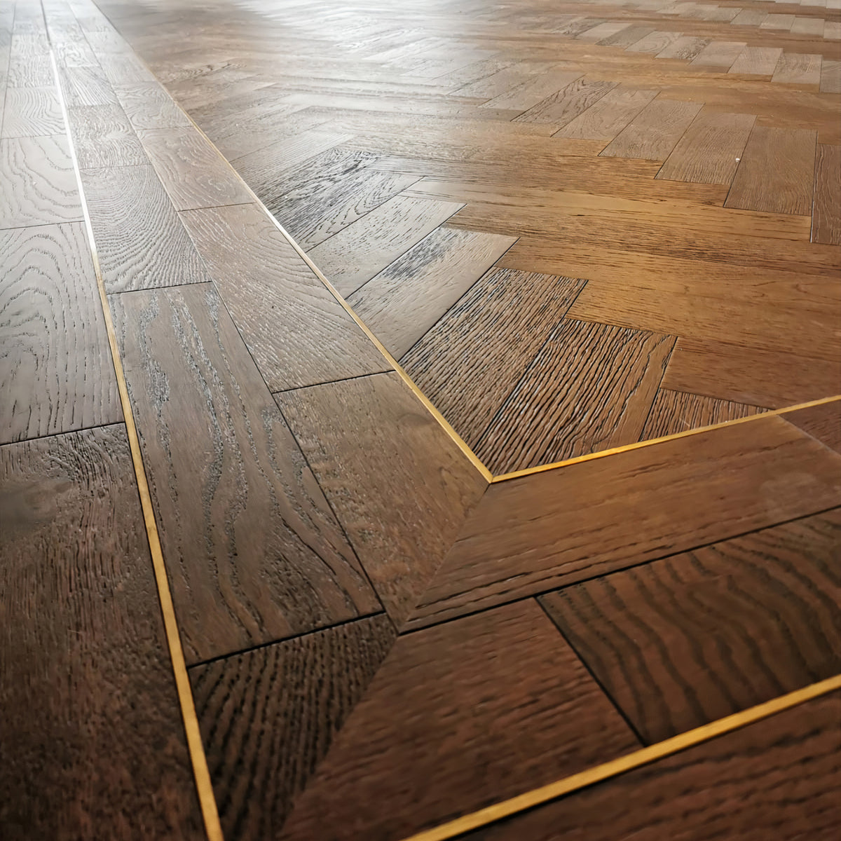 The Soho Herringbone Oak 370 engineered flooring combines timeless elegance with modern functionality, making it an exceptional choice for both residential and commercial interiors. Made from premium oak, its refined herringbone pattern enhances any room with warmth and sophistication. The wood’s natural grain is highlighted through expert staining and brushing, while a matt lacquered finish provides a smooth, wear-resistant surface.