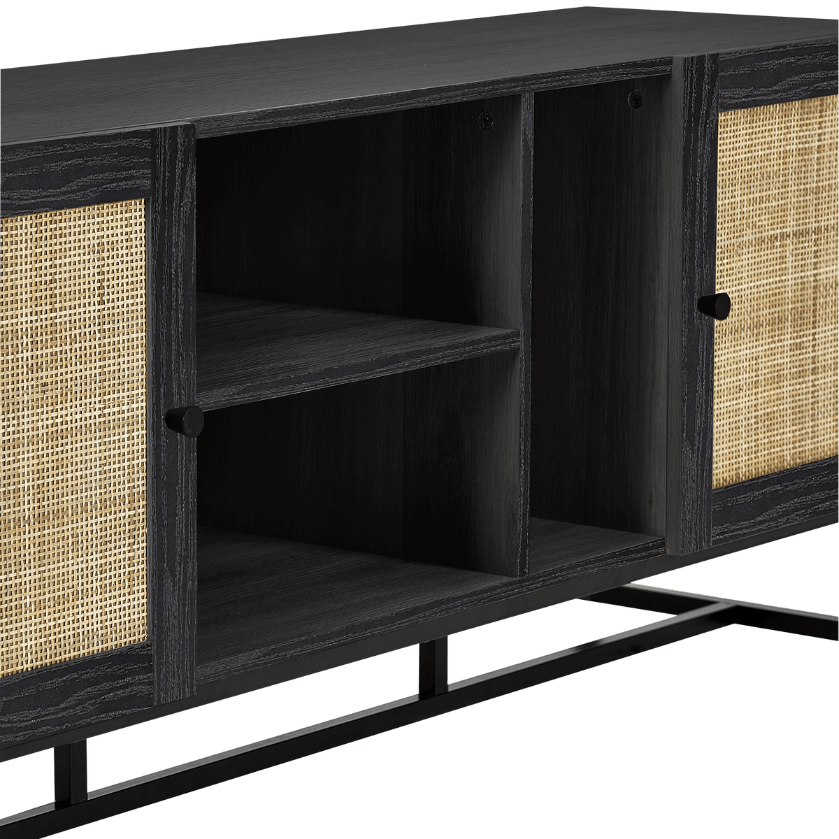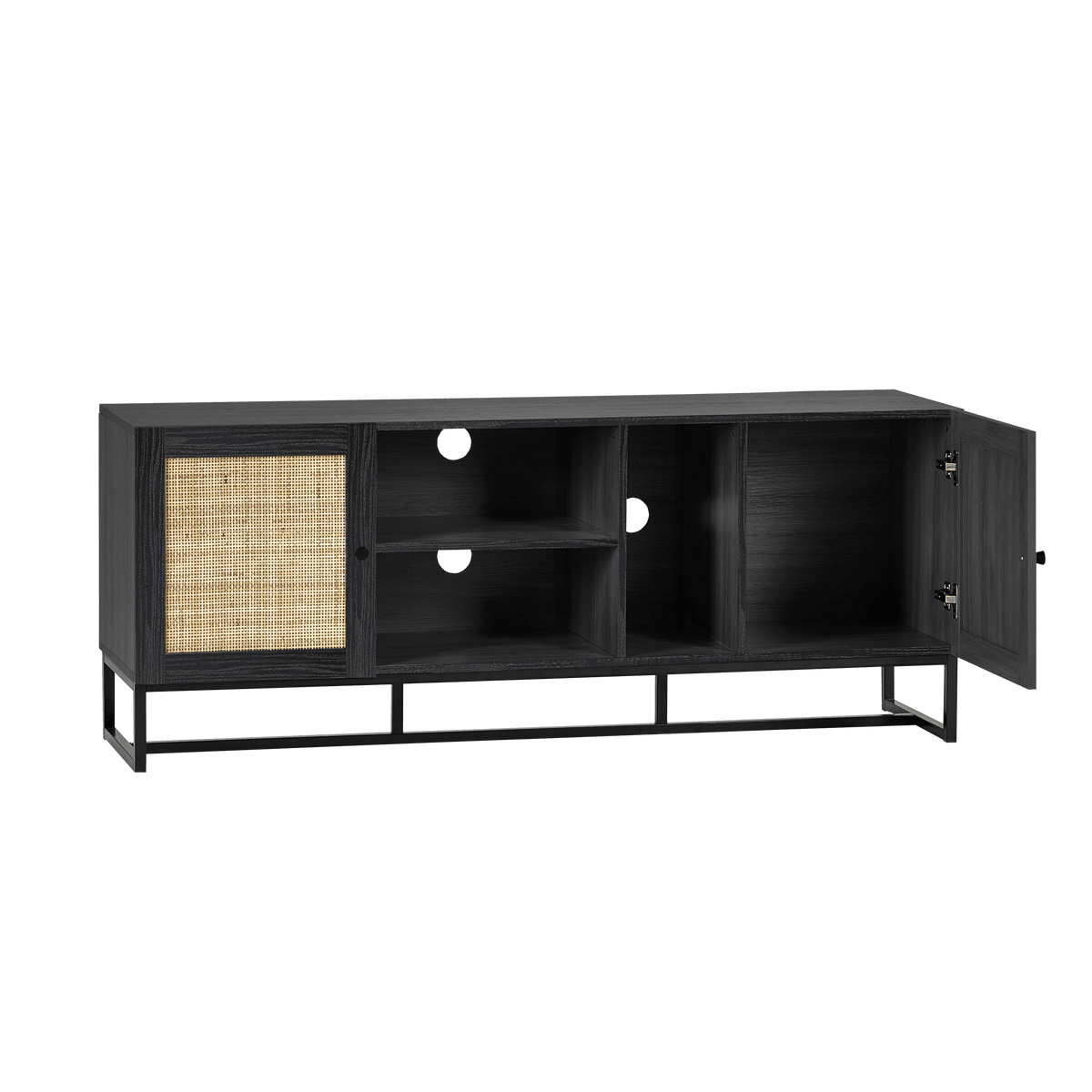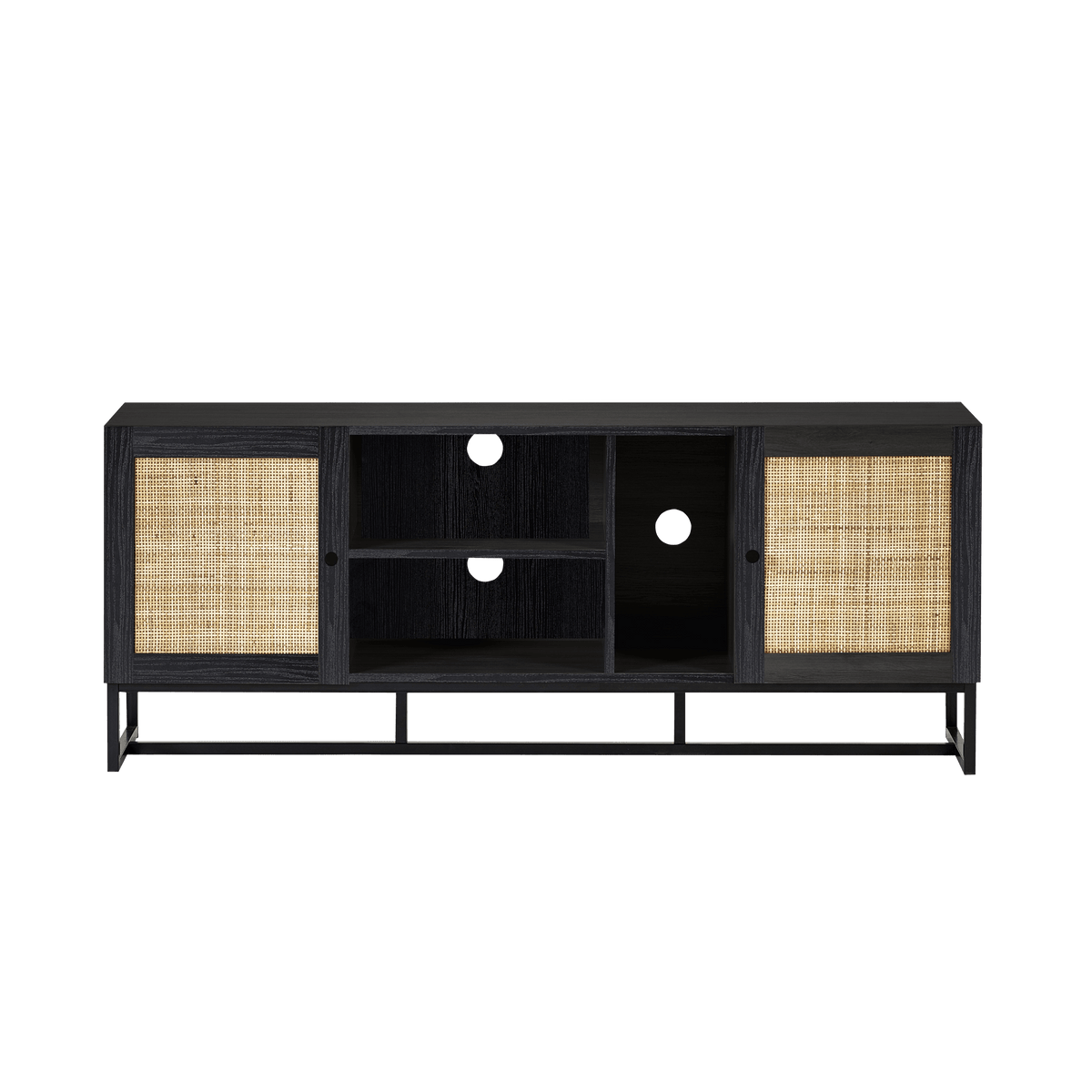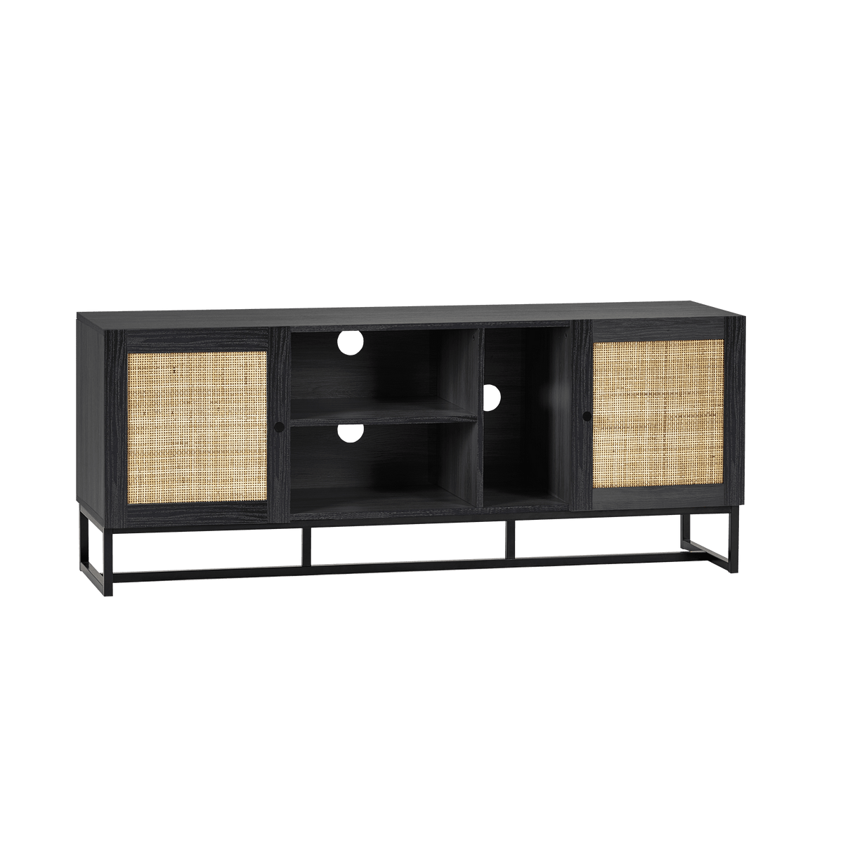 Upgrade your living space with our stylish Soho TV unit, featuring a natural wood finish and woven rattan doors for a chic, modern look. This unit offers ample storage with two spacious cabinets and open shelving, perfect for organizing your entertainment essentials. Available in both natural wood and sleek black finishes to match any decor.