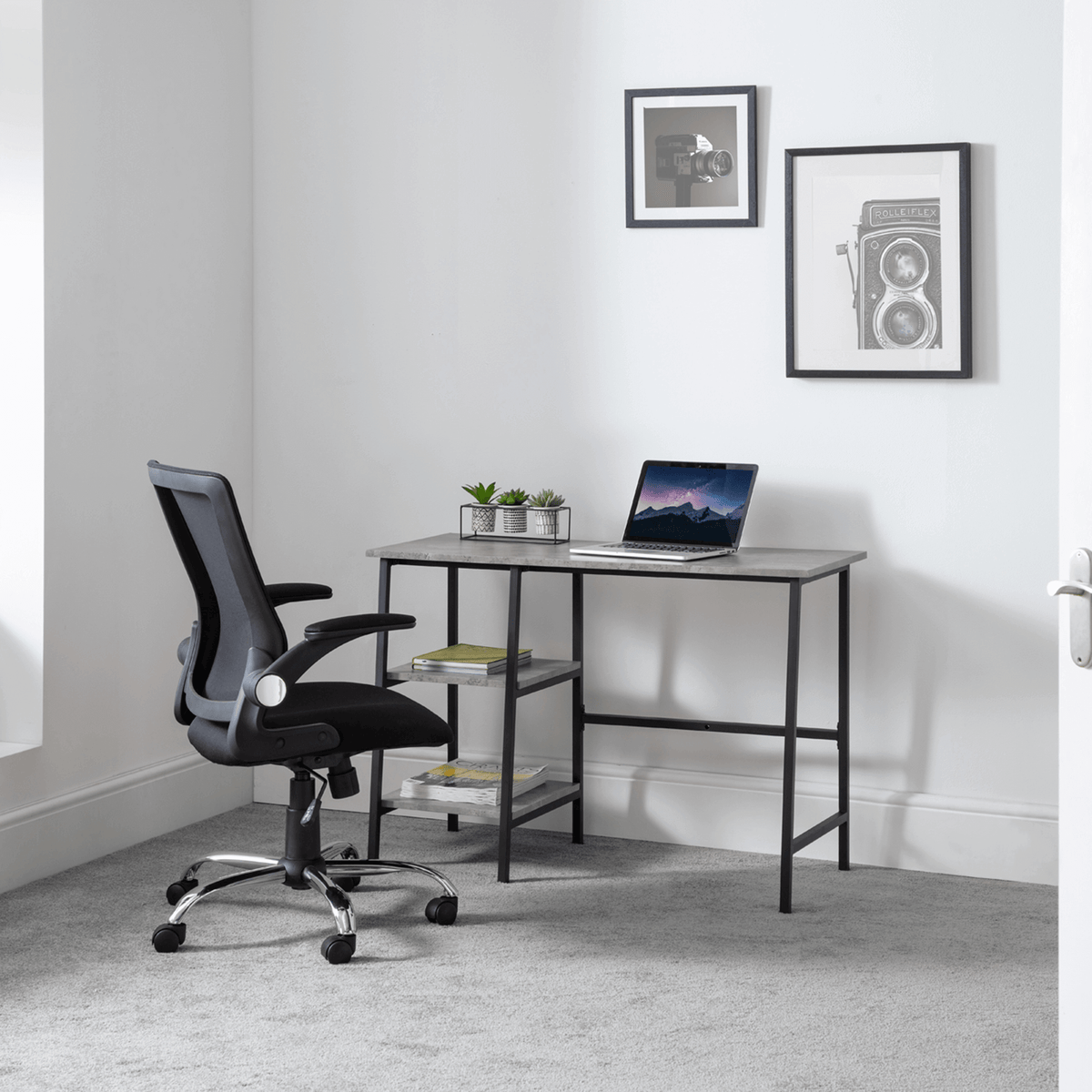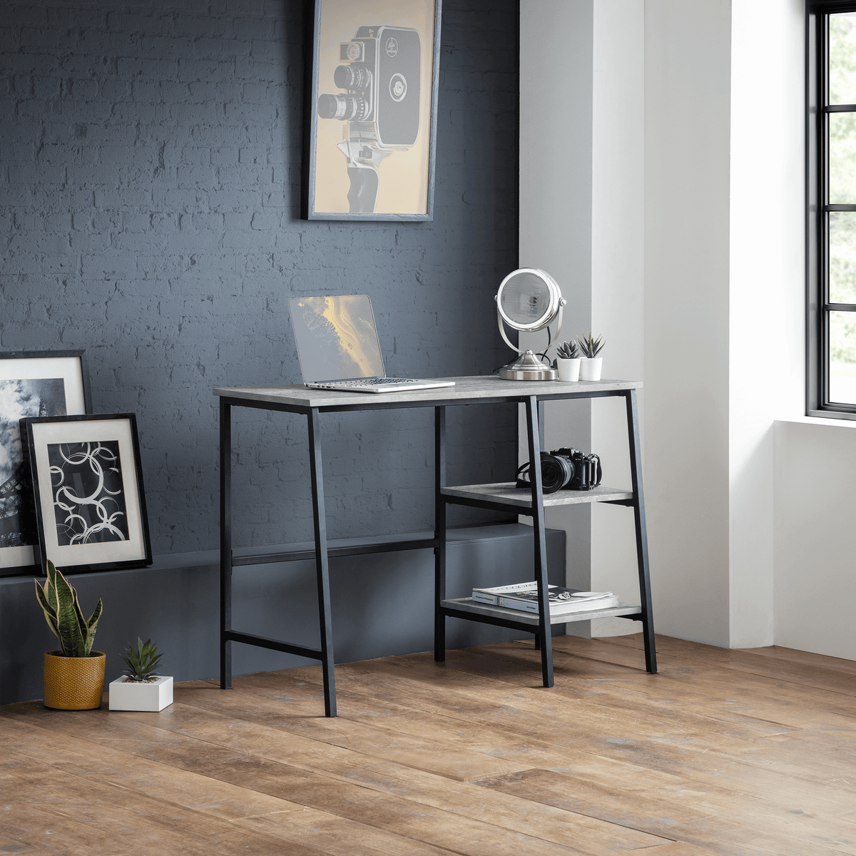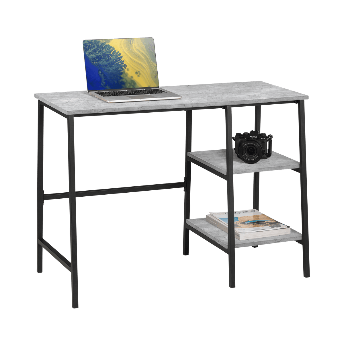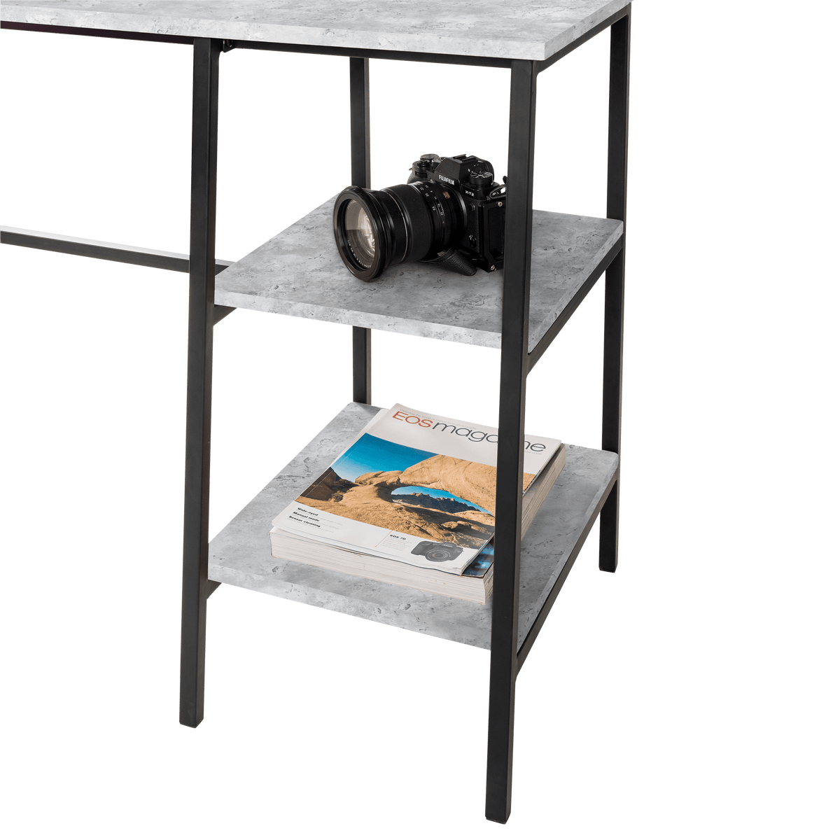 Create a sophisticated workspace with the Staten Desk. Crafted with a sleek concrete surface and a minimalist design, this desk offers both style and practicality. Its sturdy construction and ample workspace make it perfect for any home office, adding a touch of modern elegance to your work environment.