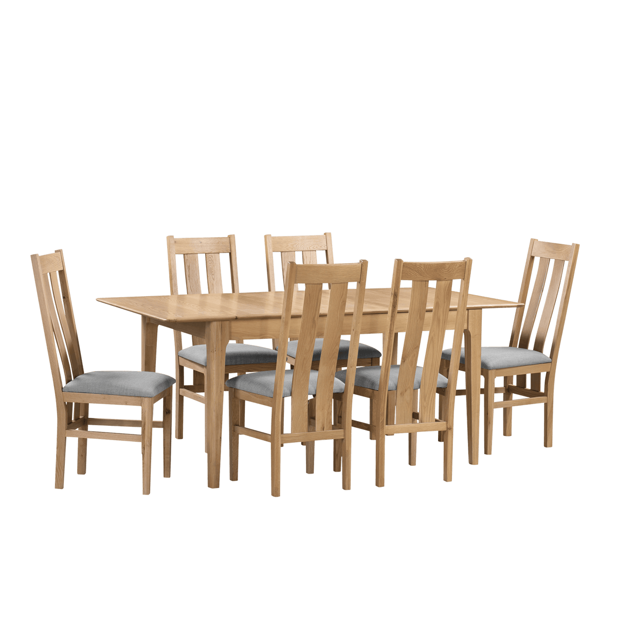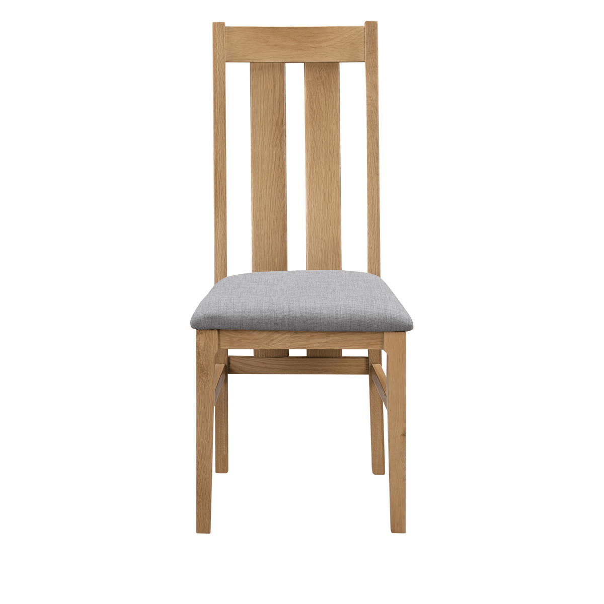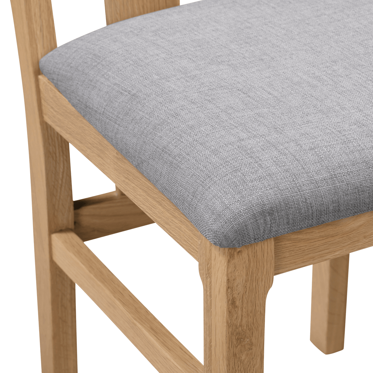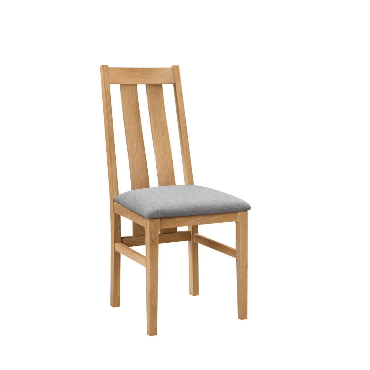 Enhance your dining experience with our Stratford Dining Chair, meticulously crafted from premium solid oak and oak veneers for unmatched durability. The plush grey linen seat pad provides exceptional comfort, while the elegantly designed slatted back offers both style and ergonomic support. Ideal for any contemporary or traditional dining room, this chair combines functionality with timeless aesthetics.
