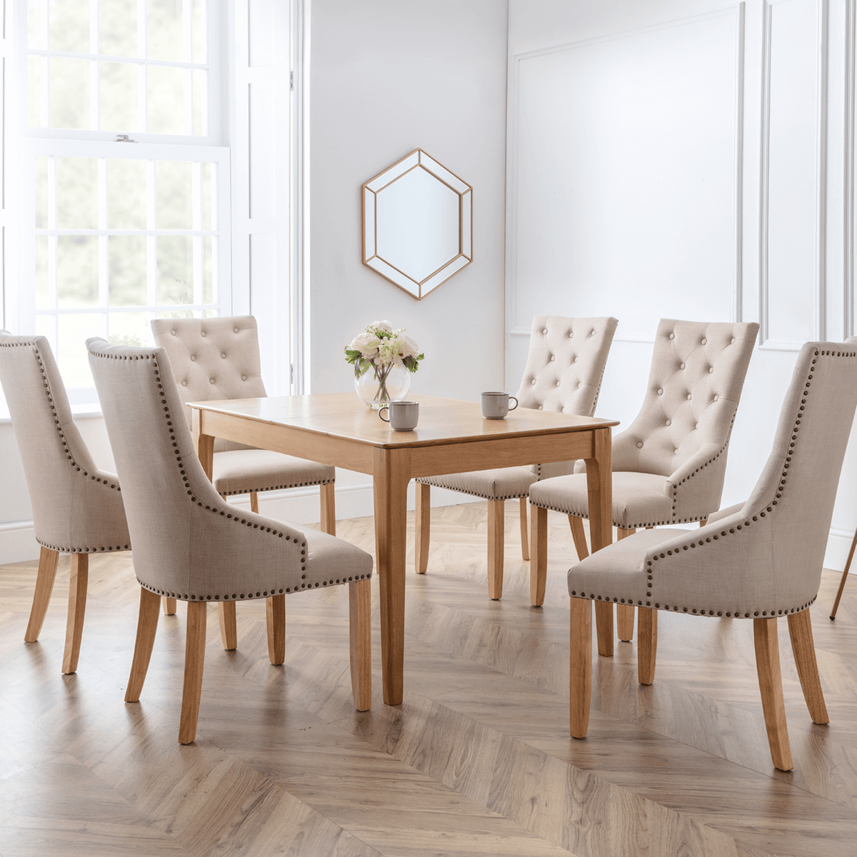 Introducing our Stratford Extended Dining Table, crafted from solid oak and oak veneers for long-lasting durability. This versatile table extends from 140cm to 180cm, providing ample space to comfortably seat up to 6 people. Ideal for family gatherings or dinner parties, it combines elegance with functionality.