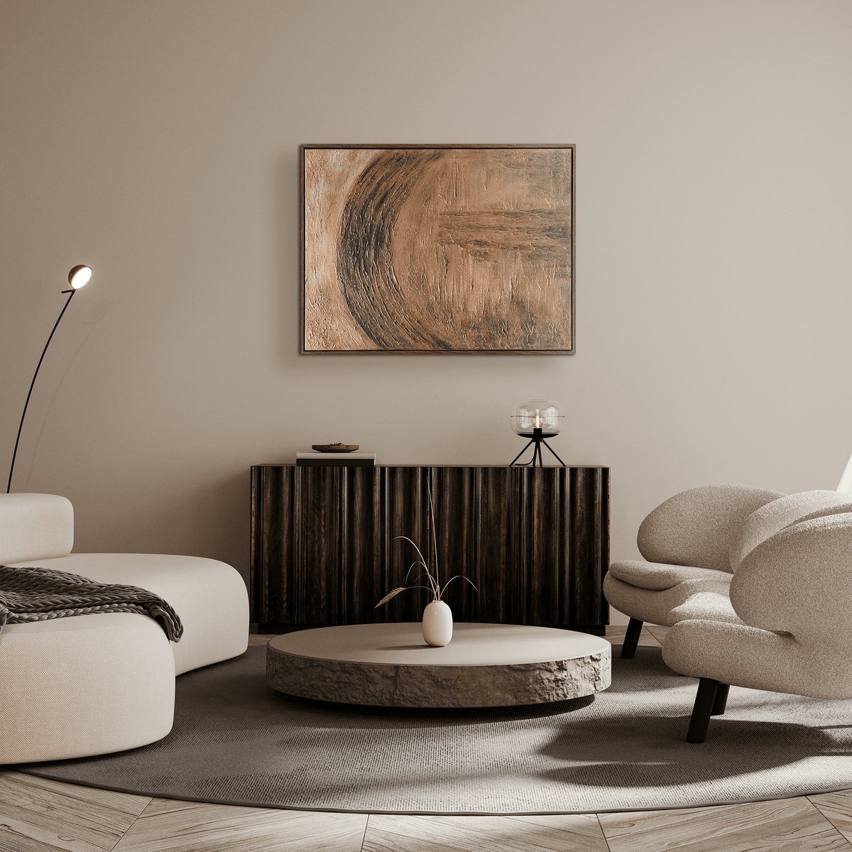 A mysterious quality sits within this art piece. The sombre colour palette and celtic markings of Draiocht art creates an ethereal composition with a sense of motion and depth. The dark wood frame finish keeps the intricacy of the piece contained. Draiocht, is a hand-painted design, by artist Jess Kelly.