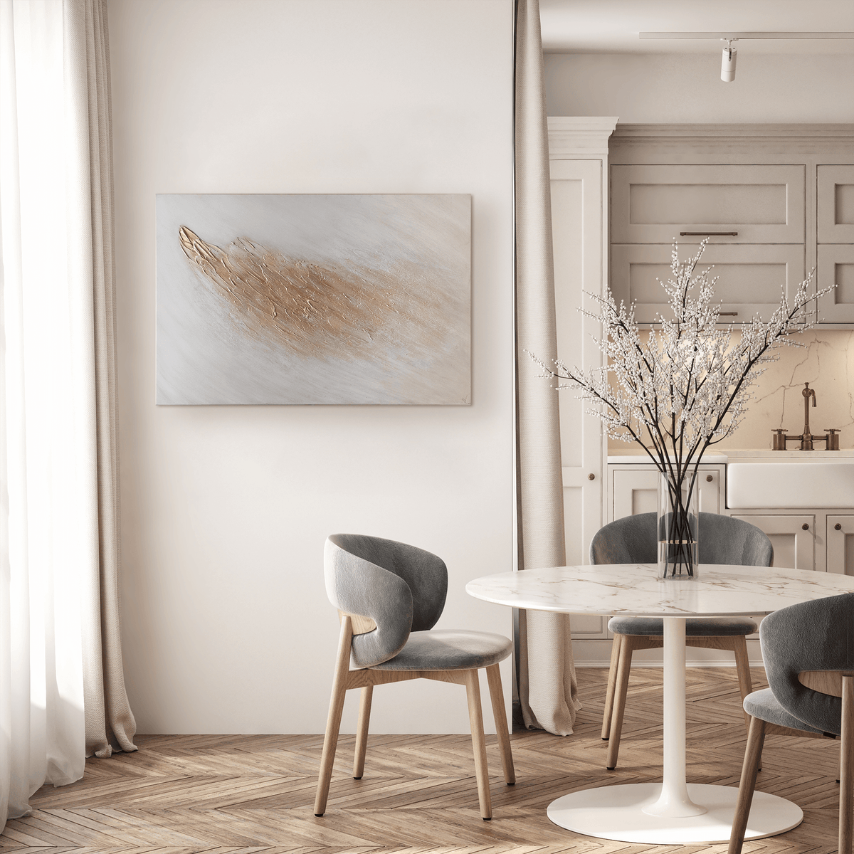 Óige means ‘Youth’ in gaelic, a fitting name for this art piece that exudes enigmatic beauty through its textures and luxe palette. The contemporary nature of this artwork fits well within a bedroom, hallway or living room space. Hanging horizontally or vertically, the frame-free canvas continued edge makes styling seamless. Óige 11, is a hand-painted design, by artist Jess Kelly.