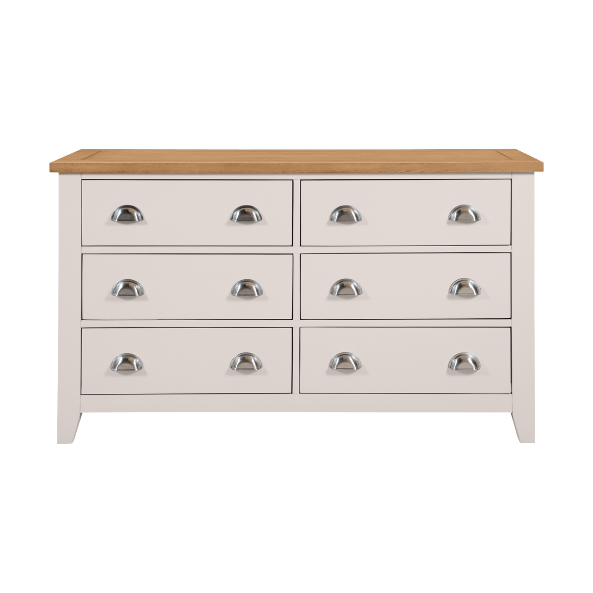 The Trinity 6 Drawer Wide Chest combines style and storage. Its elegant finish in Elephant Grey and Pale Oak adds a touch of sophistication to any room while providing ample space for your belongings.