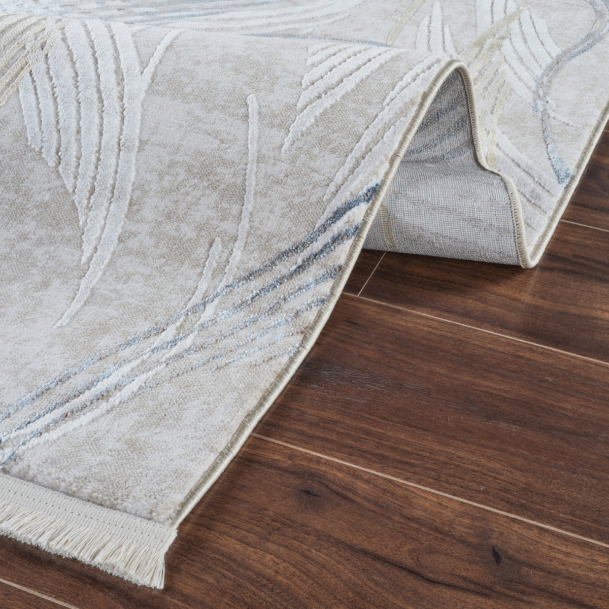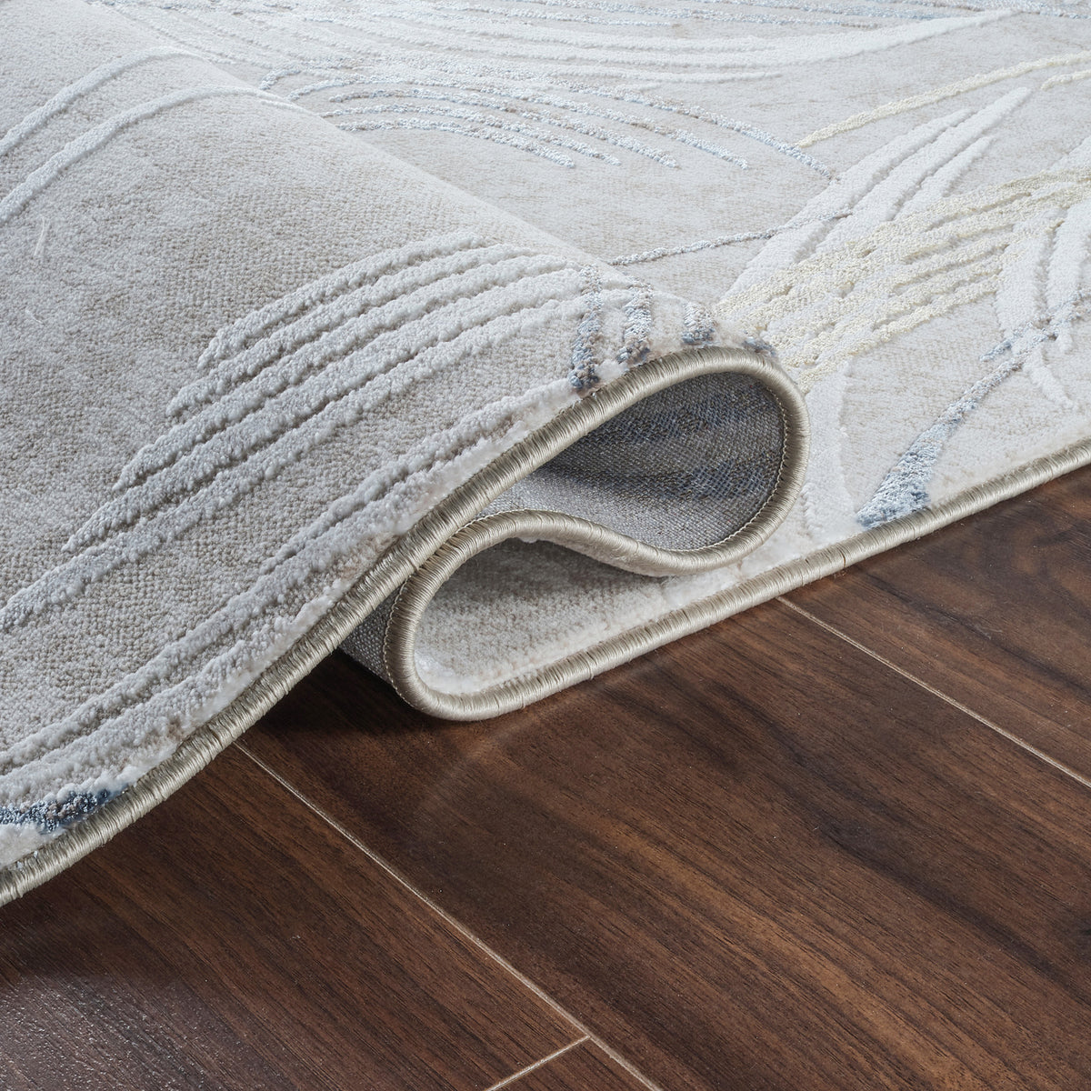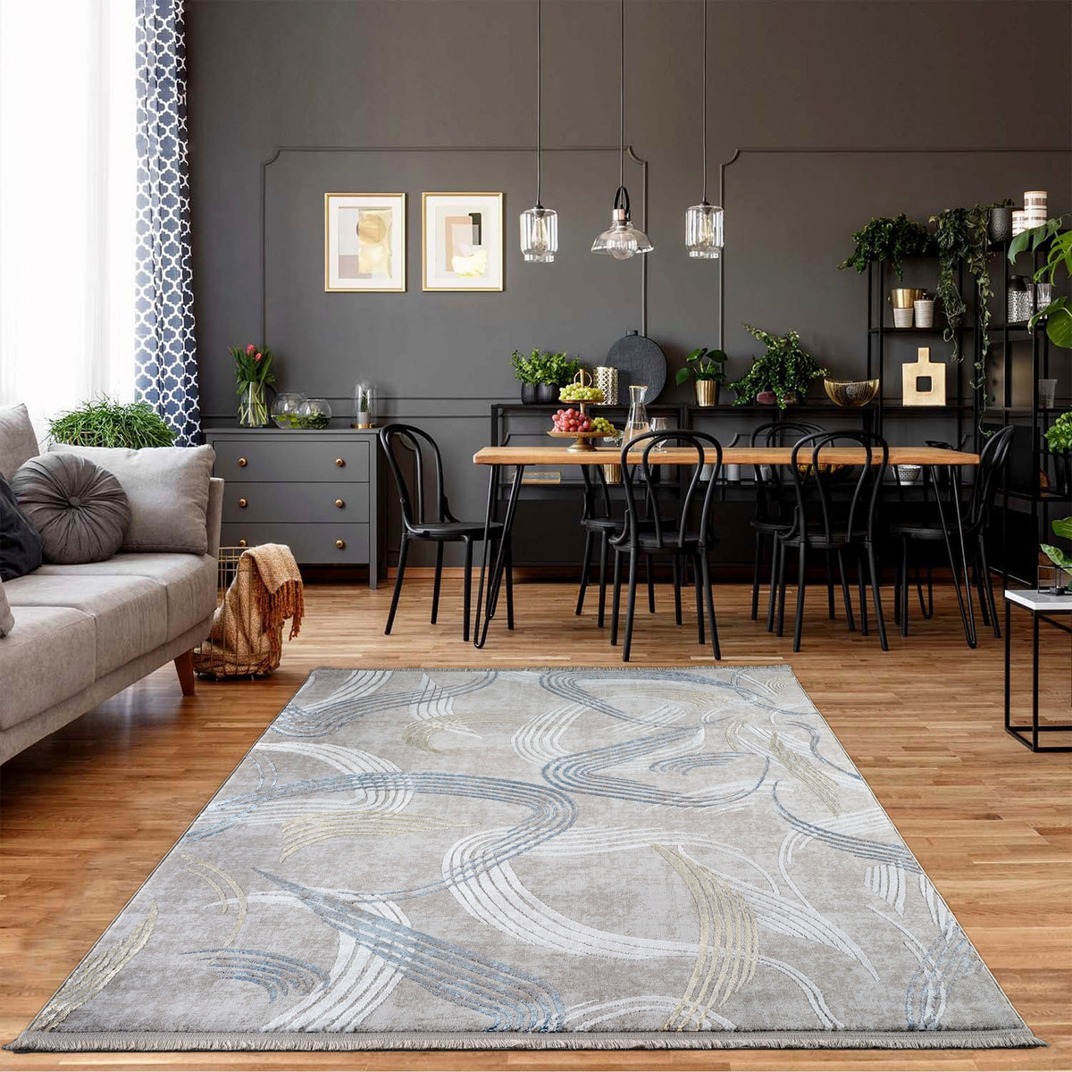 Bring contemporary elegance into your home with our Troya Curves Grey/Blue Rug.