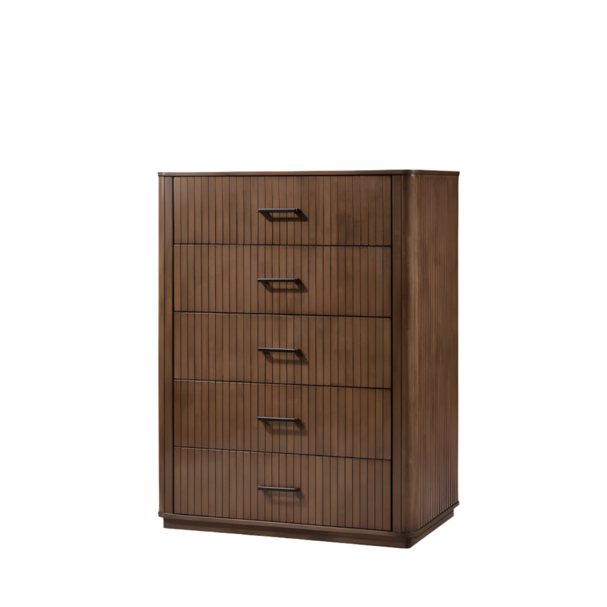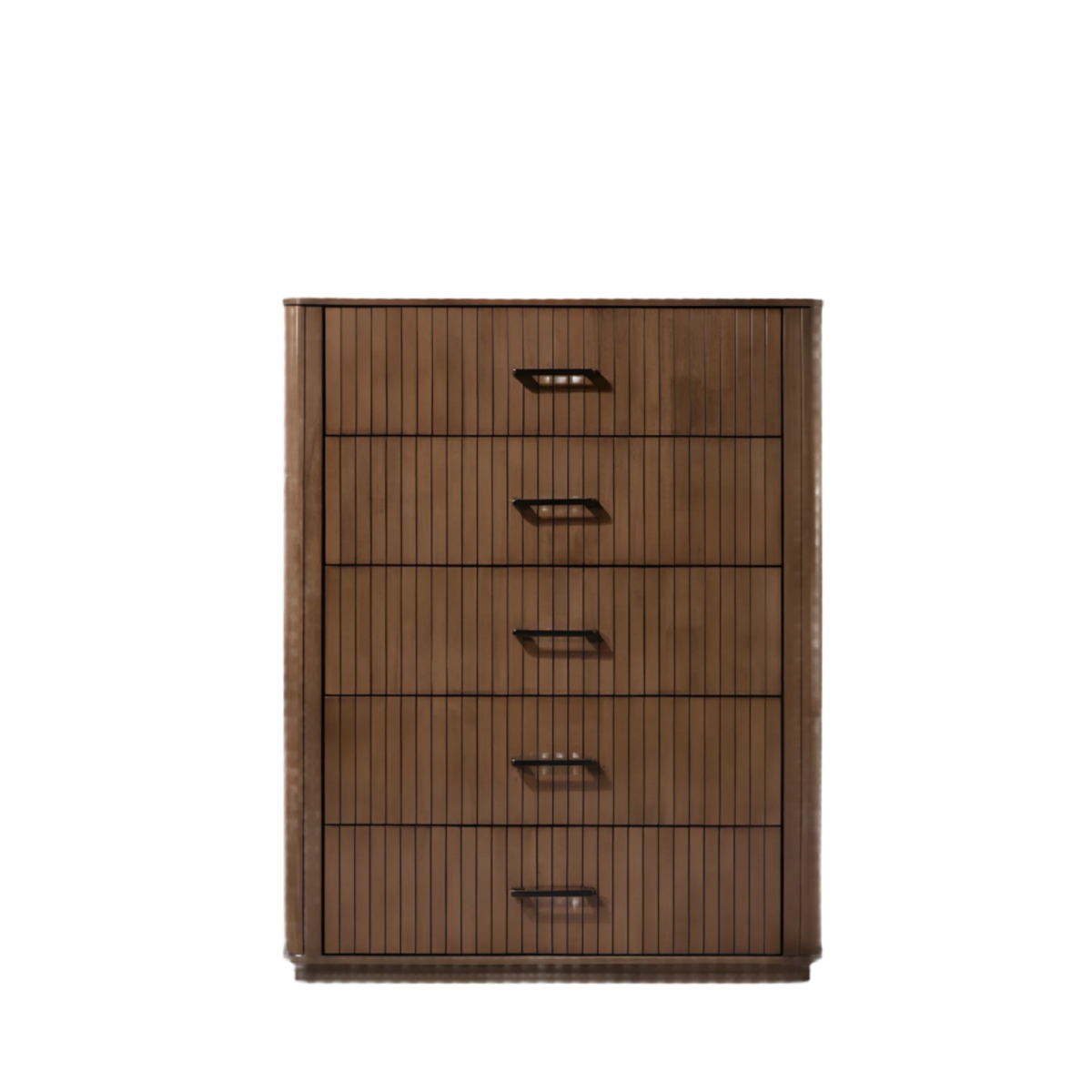 To captivate your gaze, the chest boasts intricate line details, infusing a dash of creativity into your space. Adorned in a warm walnut hue, its thoughtful design transforms it into a captivating focal point in your room, seamlessly combining style and practicality