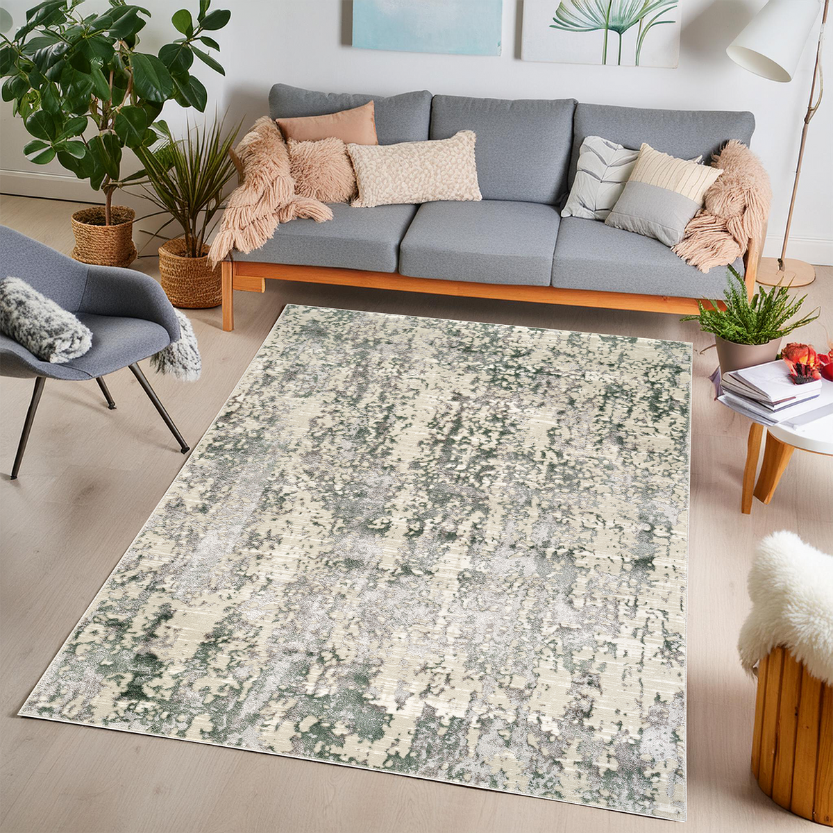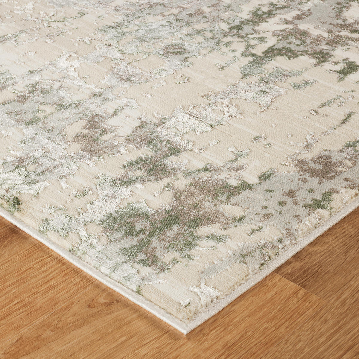 Our Vienna Aurora Green Rug features a stunning blend of soft beige, grey and green tones, perfect for adding a touch of modern elegance to any space. The intricate, distressed pattern creates a visually dynamic effect, making it a versatile choice for both contemporary and transitional interiors.