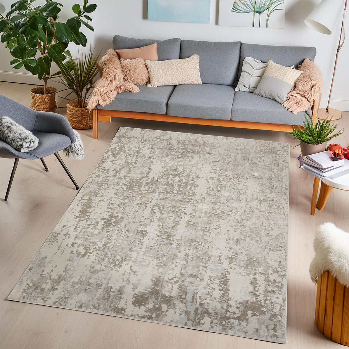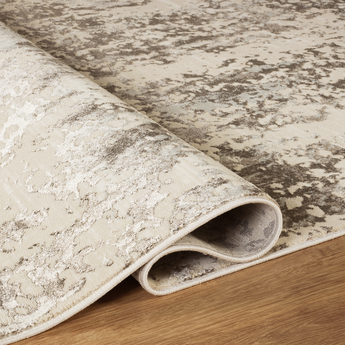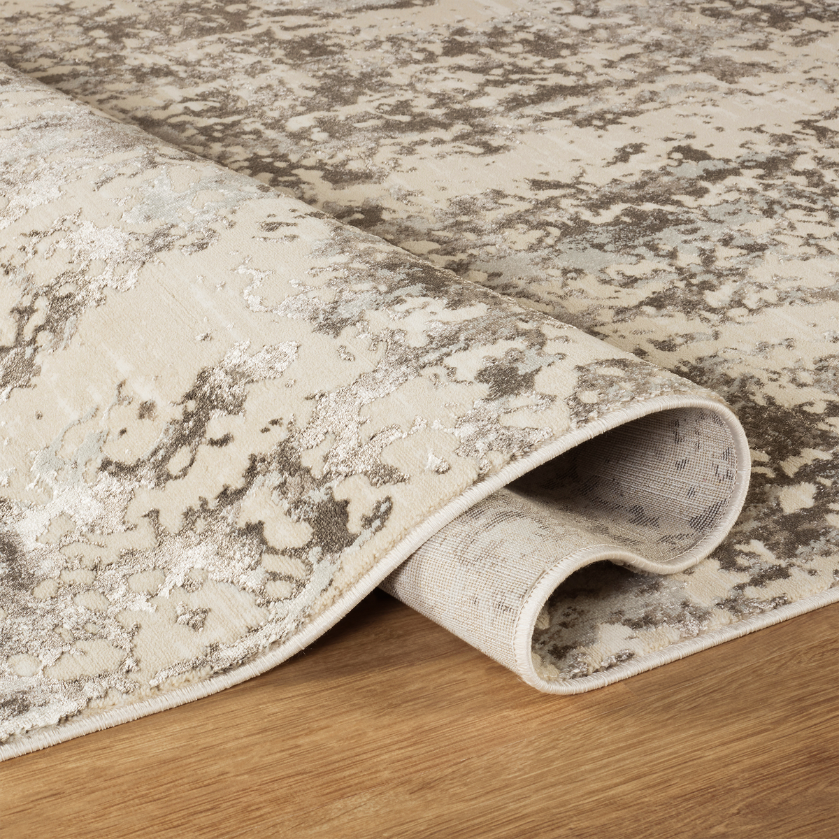 Our Vienna Aurora Blue Rug features a stunning blend of neutral tones, beige, cream, with hints of grey, perfect for adding a touch of modern elegance to any space. The intricate, distressed pattern creates a visually dynamic effect, making it a versatile choice for both contemporary and transitional interiors.