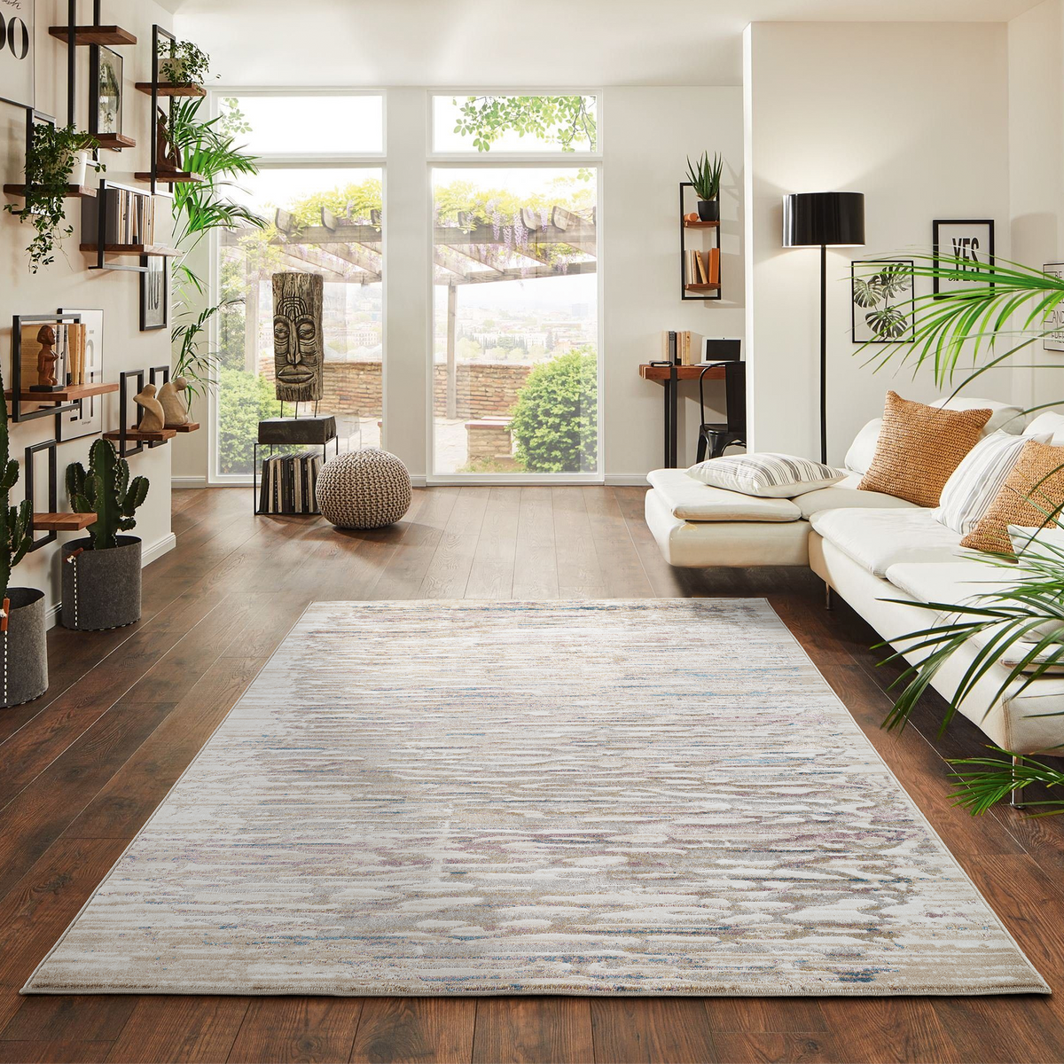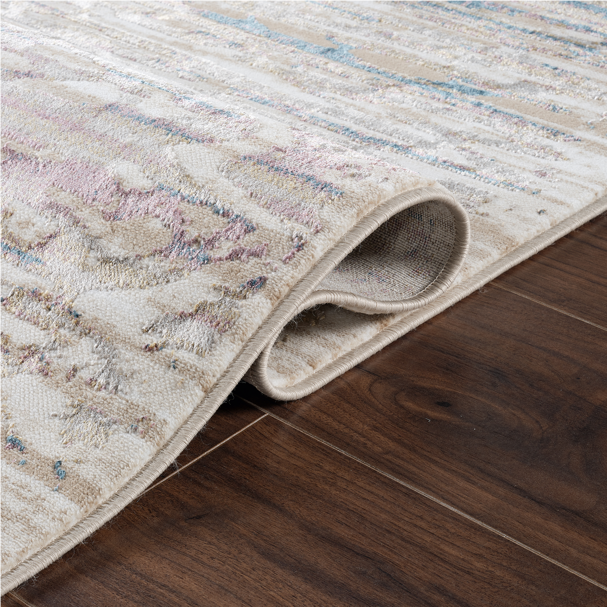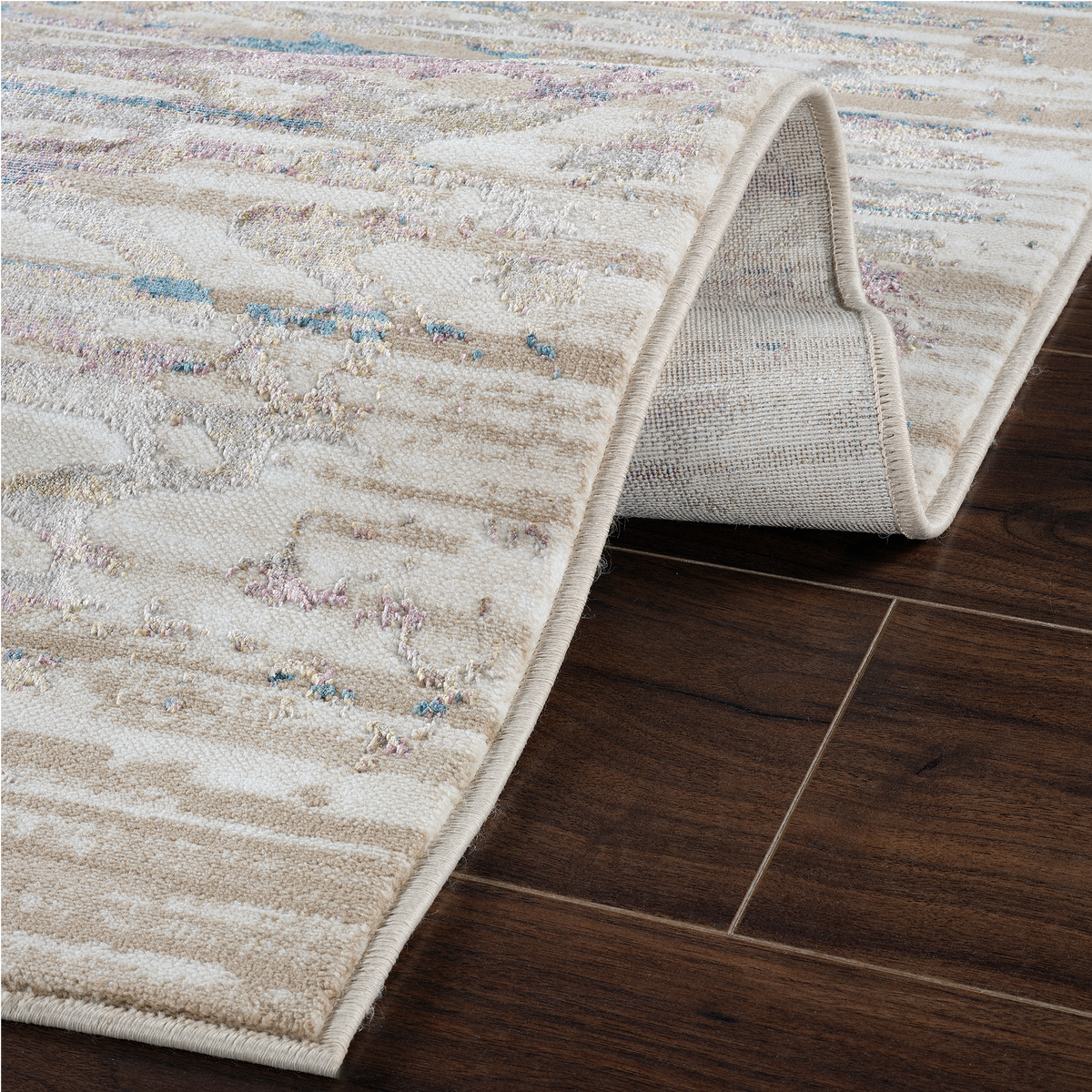 Our Vienna Sahara Multi Rug features a neutral colour palette with shades of beige, cream, and taupe, interspersed with subtle hints of blue and grey. The muted tones and understated design make this rug versatile for a variety of spaces, providing a calm, serene atmosphere while adding a touch of modern elegance.