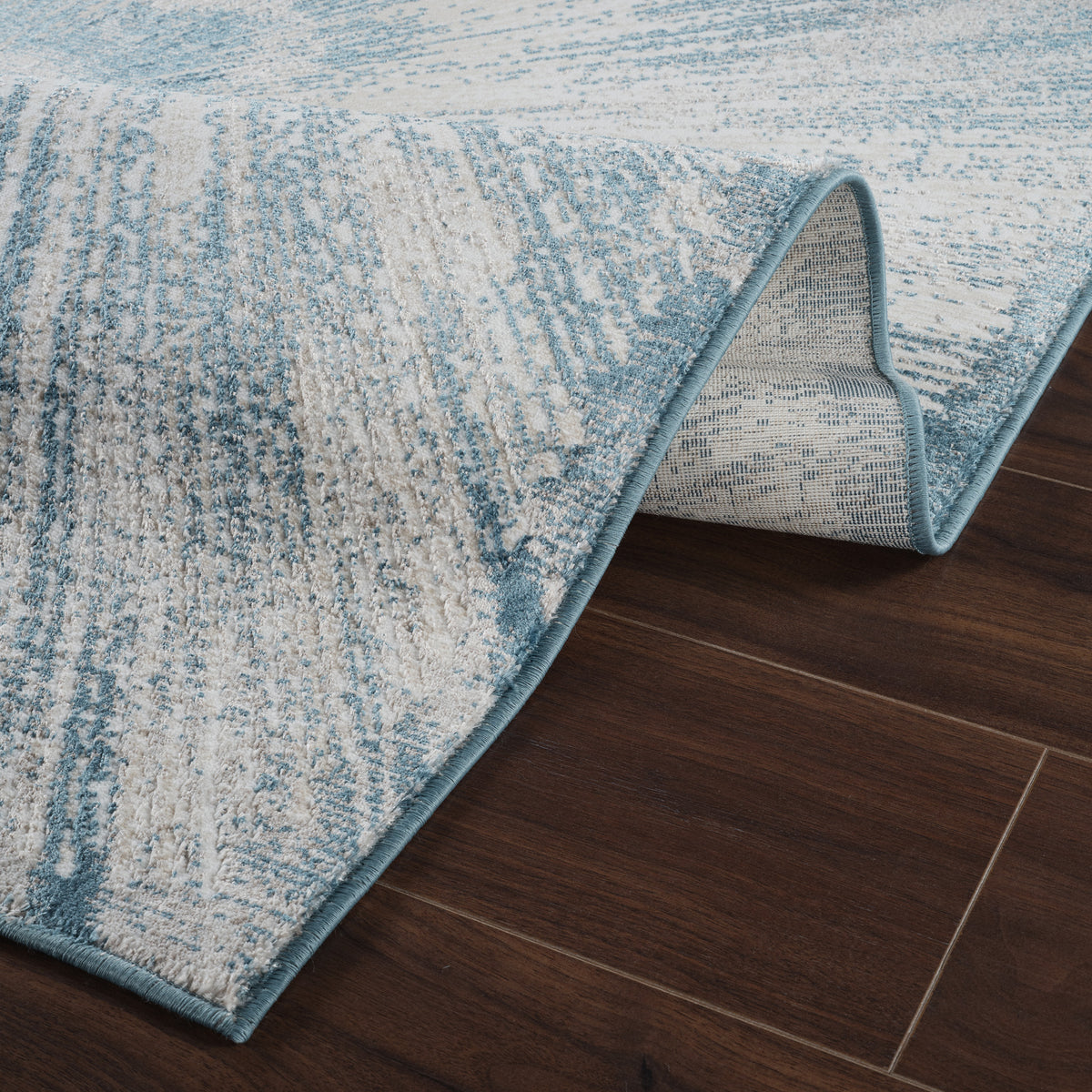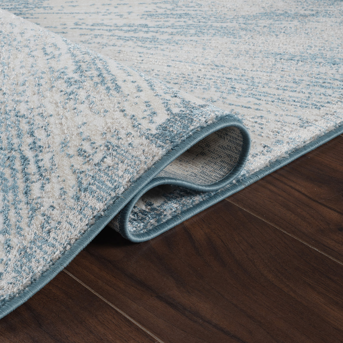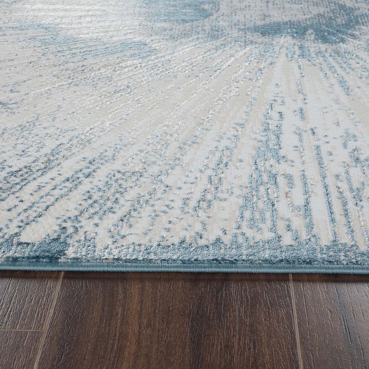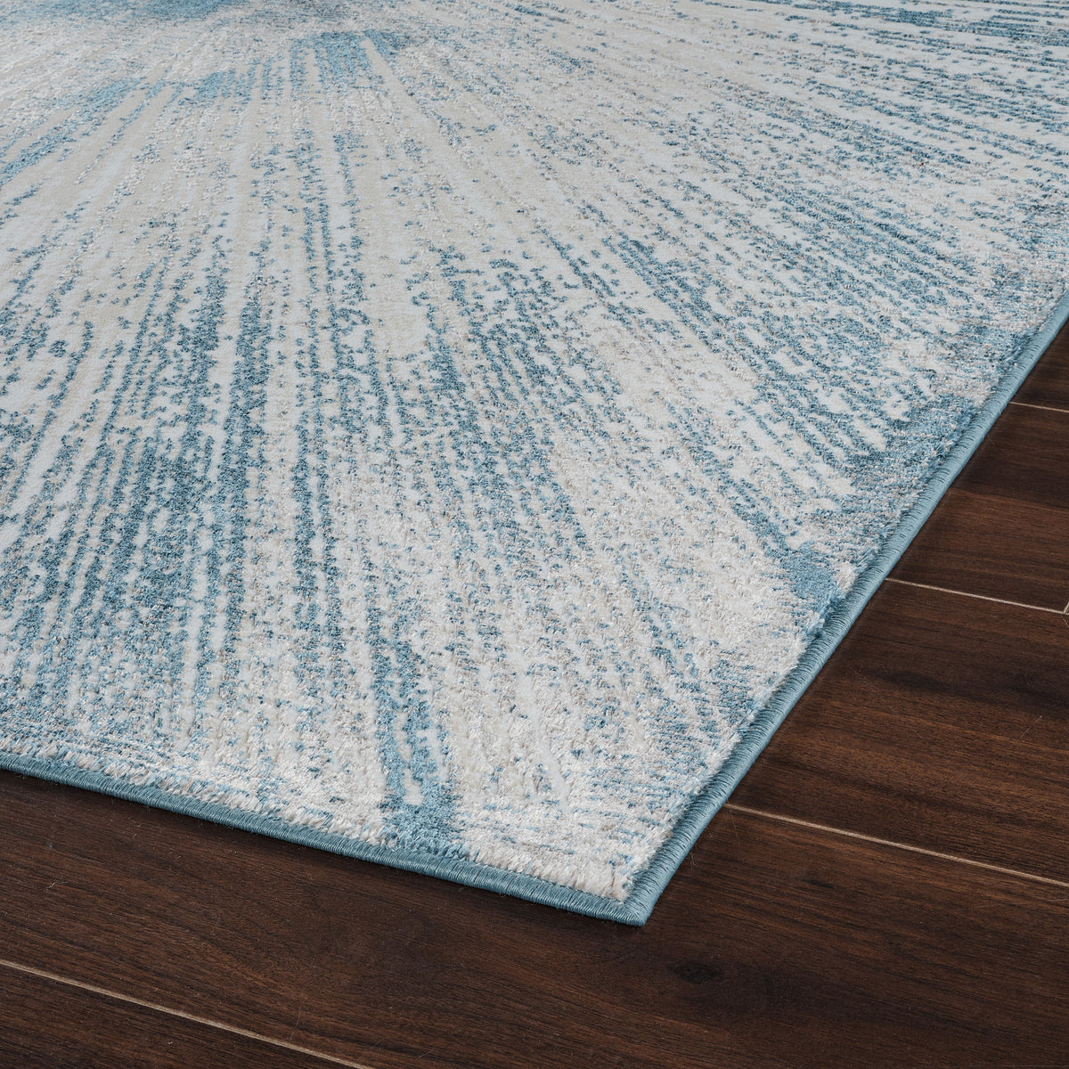 Bring contemporary elegance into your home with our Vienna Starburst Blue Rug.