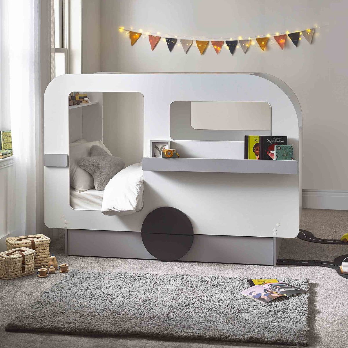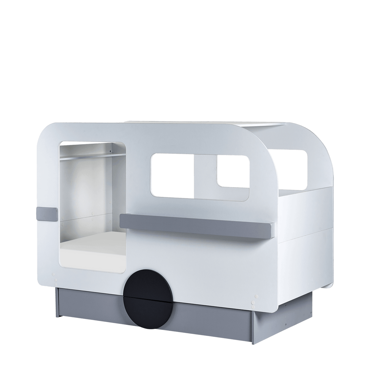 Introducing the Voyager Caravan Bed, designed to ignite your little one's imagination and sense of adventure. Shaped like a charming caravan, this unique bed invites endless playtime and cosy nights, making it an ideal space for both relaxation and exploration.