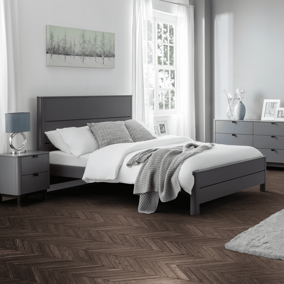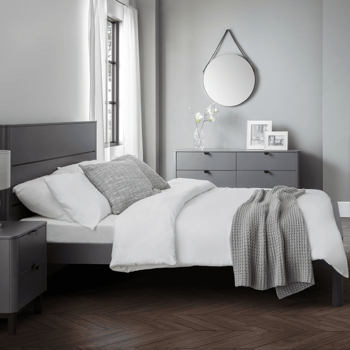 This bed is crafted from lacquered MDF, ensuring long-lasting durability and a smooth, high-quality finish making it the perfect centrepiece for any modern bedroom.