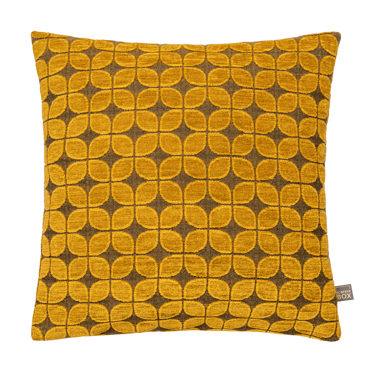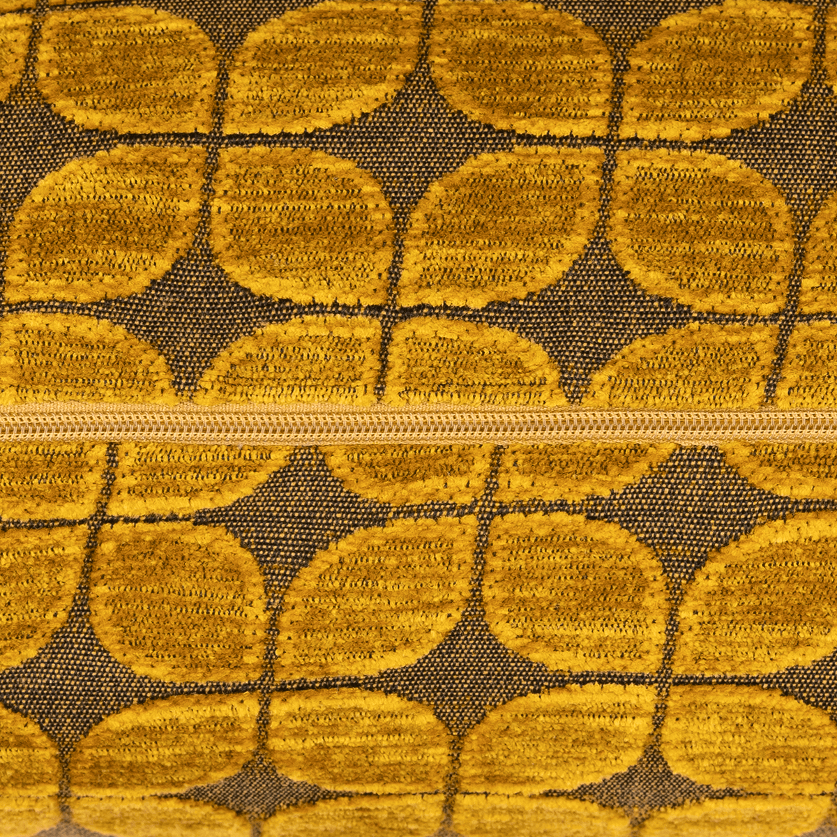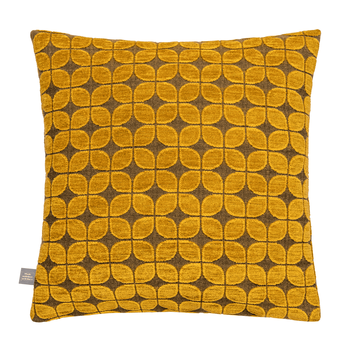 The Winnie, Gold cushion captures the rich textures tightly woven on the Jacquard chenille fabric. The backdrop of rich warm grey fabric highlights the captivating geometric design. The cushion is handmade with love in Ireland and features knife edge finish.